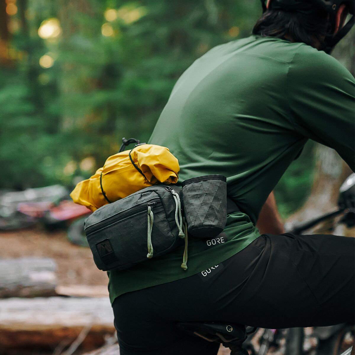 • Stretch fabric is motion-friendly to let us contour around the bike