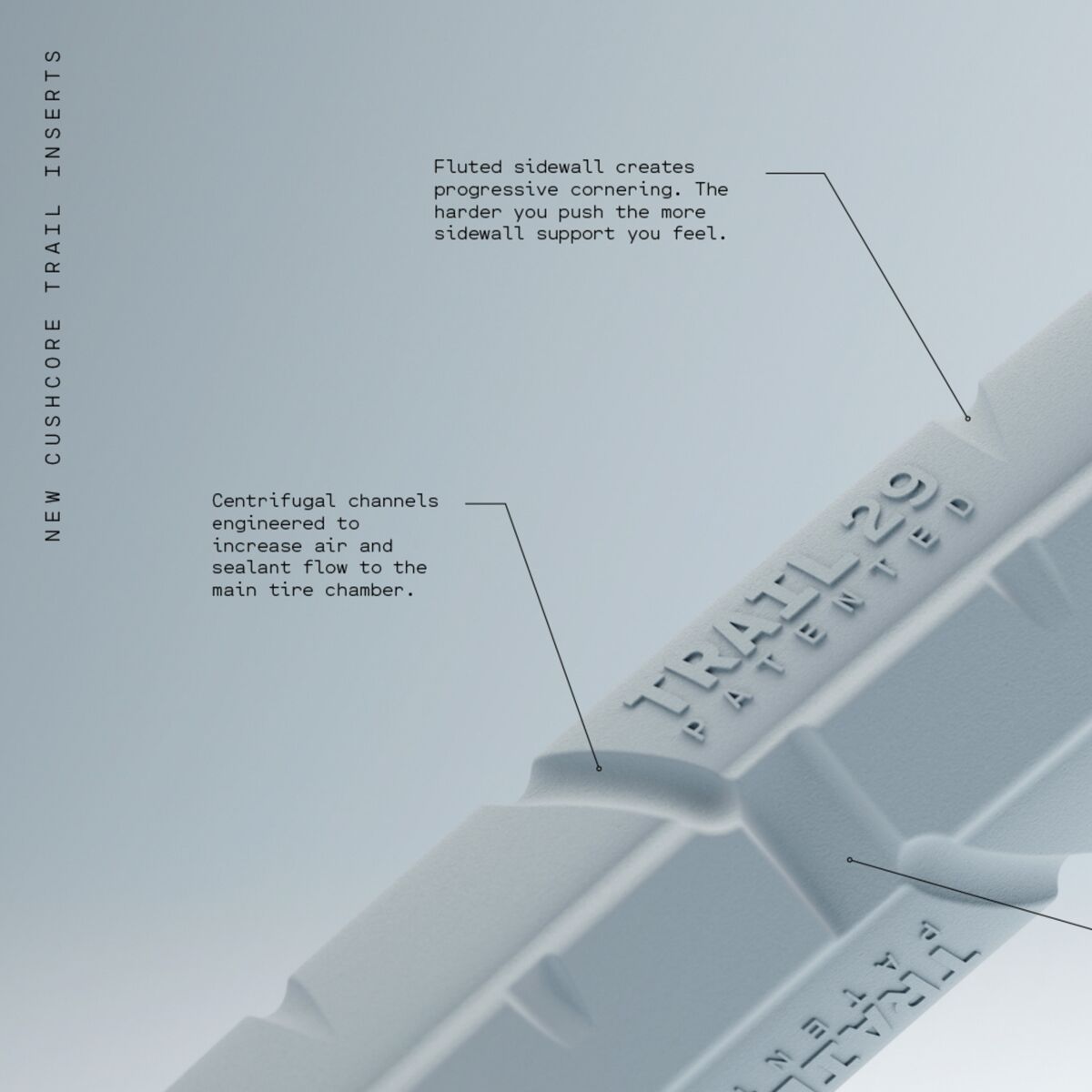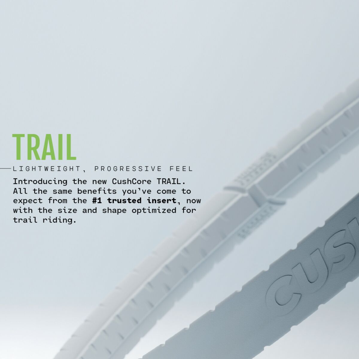 Additionally, CushCore TRAIL was engineered to provide more progressive sidewall support: the harder you push, the more support youll feel. Enabling supple tire response on flat corners and a stable sidewall when railing berms.