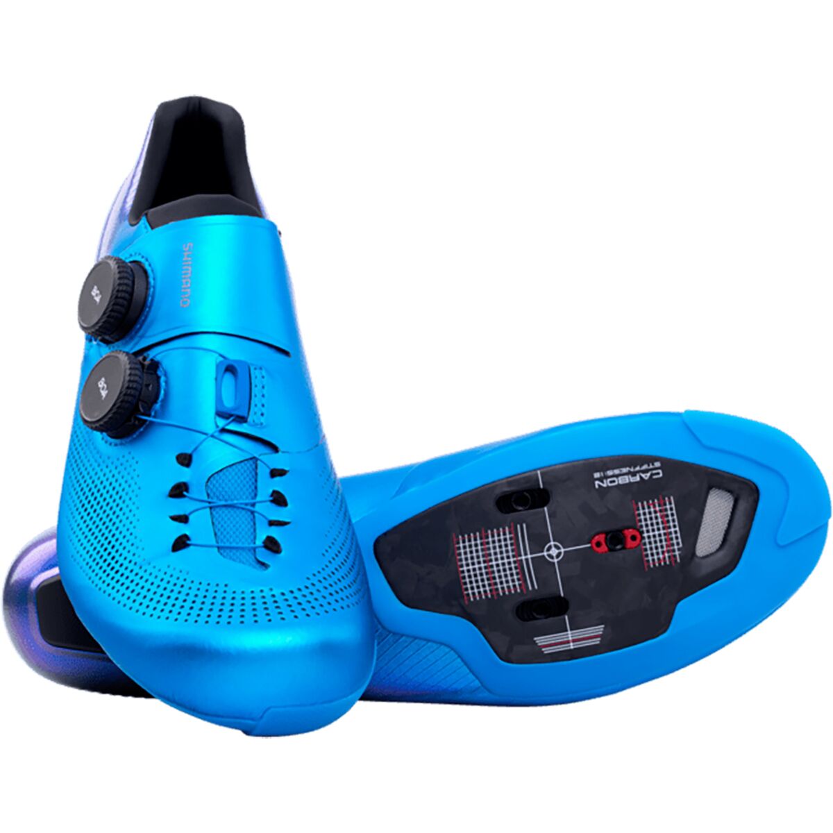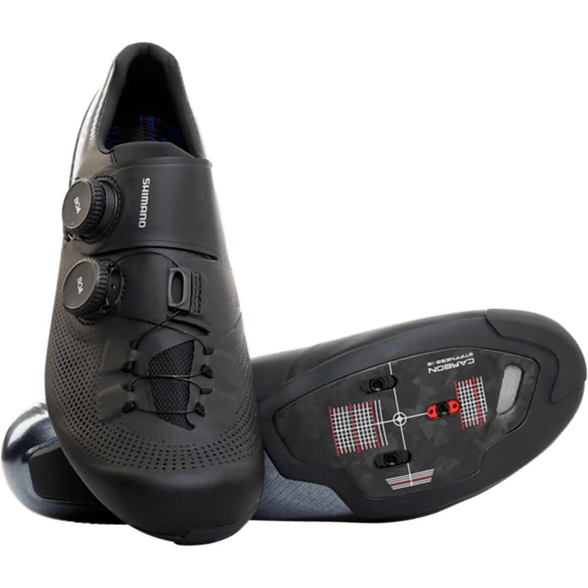 The race-engineered Shimano RC903 S-PHYRE Wide Cycling Shoes feature the same high-performance technology as its regular width version, but with a wider fit for riders who seek a bit of extra space. Using DYNALAST technology, a proprietary last built specifically for wide-width shoes, you are provided with a fit that conforms to the natural contours of your foot to allow for a smooth, efficient upstroke. An anti-twist heel cup in the shoe´s footbed stabilizes your heel when you put down max watts, while its optimum stiffness levels maximize your power transfer and reduce energy loss.