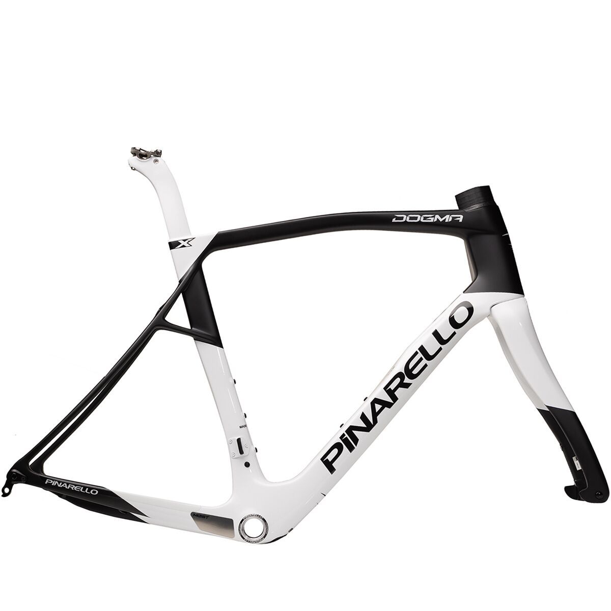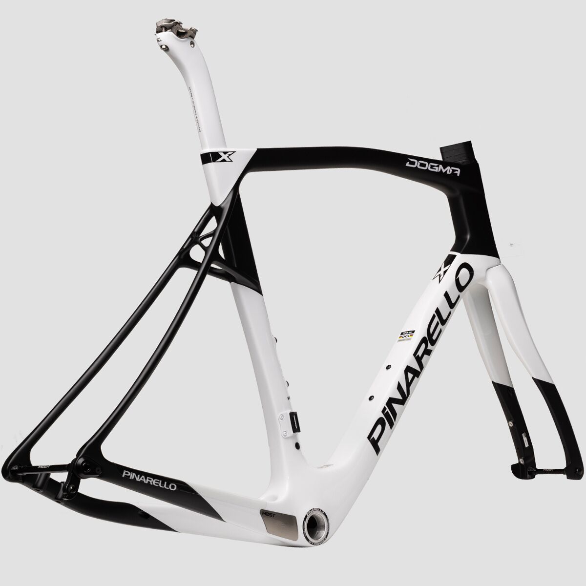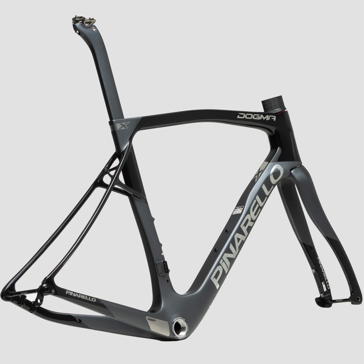 Balancing comfort and performance, the Pinarello Dogma X Disc Road Frameset is the perfect starting point for our dream endurance road setup. The Toray T1100 1K carbon fiber layup keeps things light and responsive, boasting an incredible stiffness-to-weight ratio and dampening vibrations from rough roads. Created for riders who love spending all day in the saddle, this frameset features innovative Endurance geometry that places us in a relaxed yet powerful and aerodynamic position. Also, like every other Pinarello frameset, the Dogma X features an asymmetric design to balance the torsional force of the chain, creating a symmetrical ride.