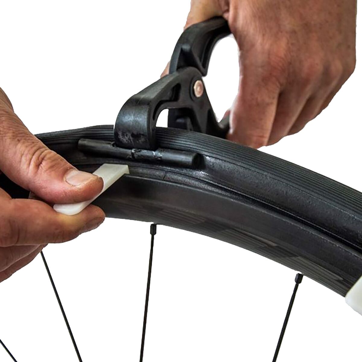 Each kit contains a pair of pliers and clips. Our patented plier design provides a gentle yet secure grip on the tire which is necessary when removing the tire bead from the rim.