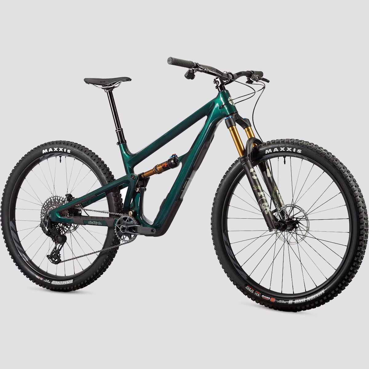 The X0 AXS Transmission build is top-tier and has premium drivetrain, suspension, and cockpit components to bring us the absolute best on the trail. First up is Ibis´s premium carbon frame, which sports a lightweight and durable carbon layup that has an excellent reputation for durability. Next, SRAM´s X0 Transmission drivetrain equips us with a 12-speed drivetrain that shifts electronically for precision and efficiency and sports a huge gear range for any technical climb. A Fox Float Factory DPS rear shock is lightweight and has tons of adjustments so we can tune our ride to our preference, while the Fox Float 34 Factory GripX fork gives us the support and cushion we need to plow down descents or race up a climb. SRAM Code RSC brakes throw down tons of power to keep us under control on sketchy descents, and the upgraded Industry Nine carbon fiber wheels ensure precise handling, reduced trail feedback, and a lighter overall weight.