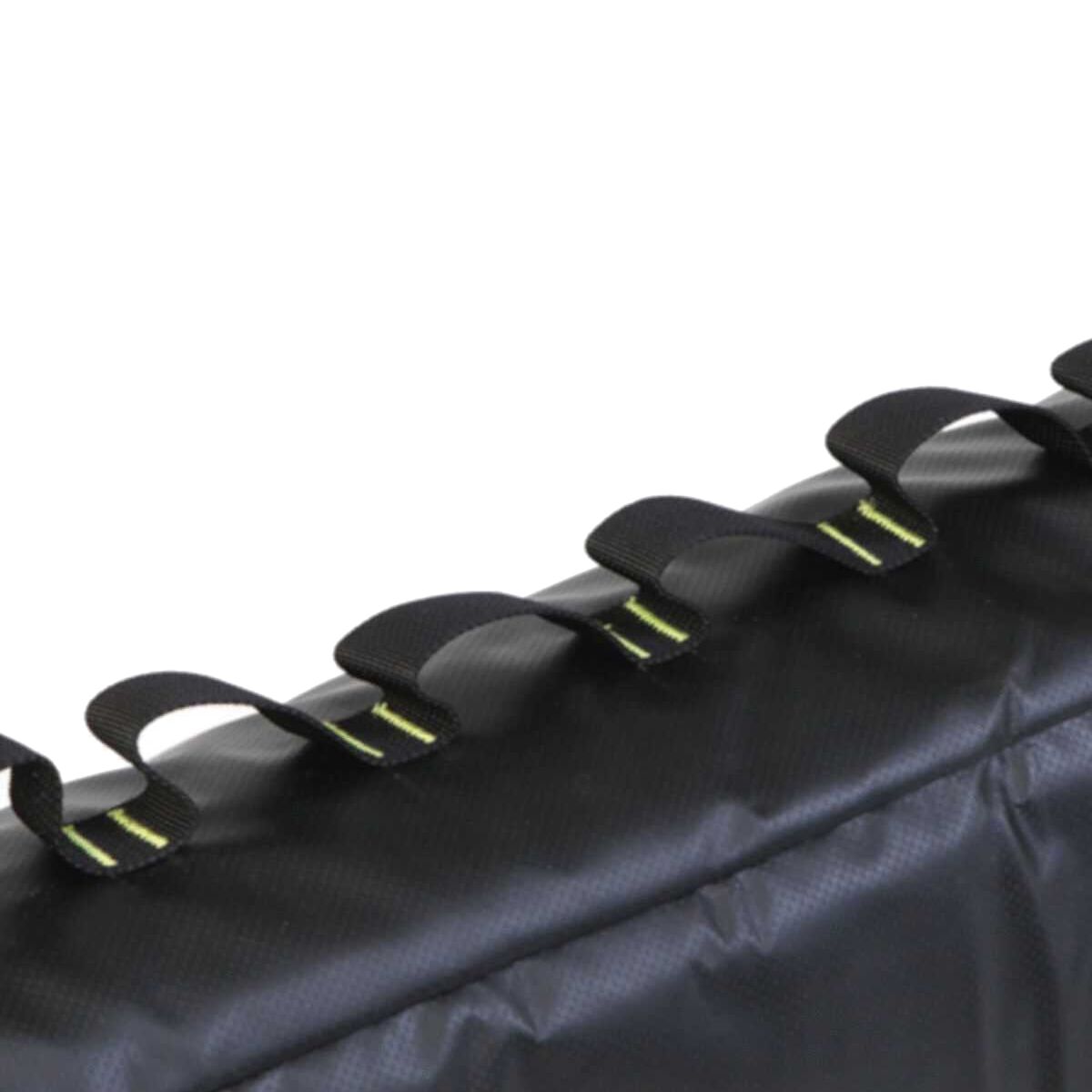 Whether you´re taking a week-long road trip to Whistler, or just shuttling some of your local trails, a tailgate pad is the quickest and easiest way to transport all your friend´s bicycles. The Swagman Tailwhip Tailgate Pad uses high-density foam to protect both your bike and your pickup truck, and is covered with waterproof ballistic tarpaulin to ensure durability season after season. A soft fleece interior protects your truck´s paint from scratches, while the extra large flap allows access to your tailgate latch and backup camera. Strategically placed daisy chains allow you to strap down your bikes in any position, keeping them from getting scratched up on the rugged dirt roads used to access your favorite trails.