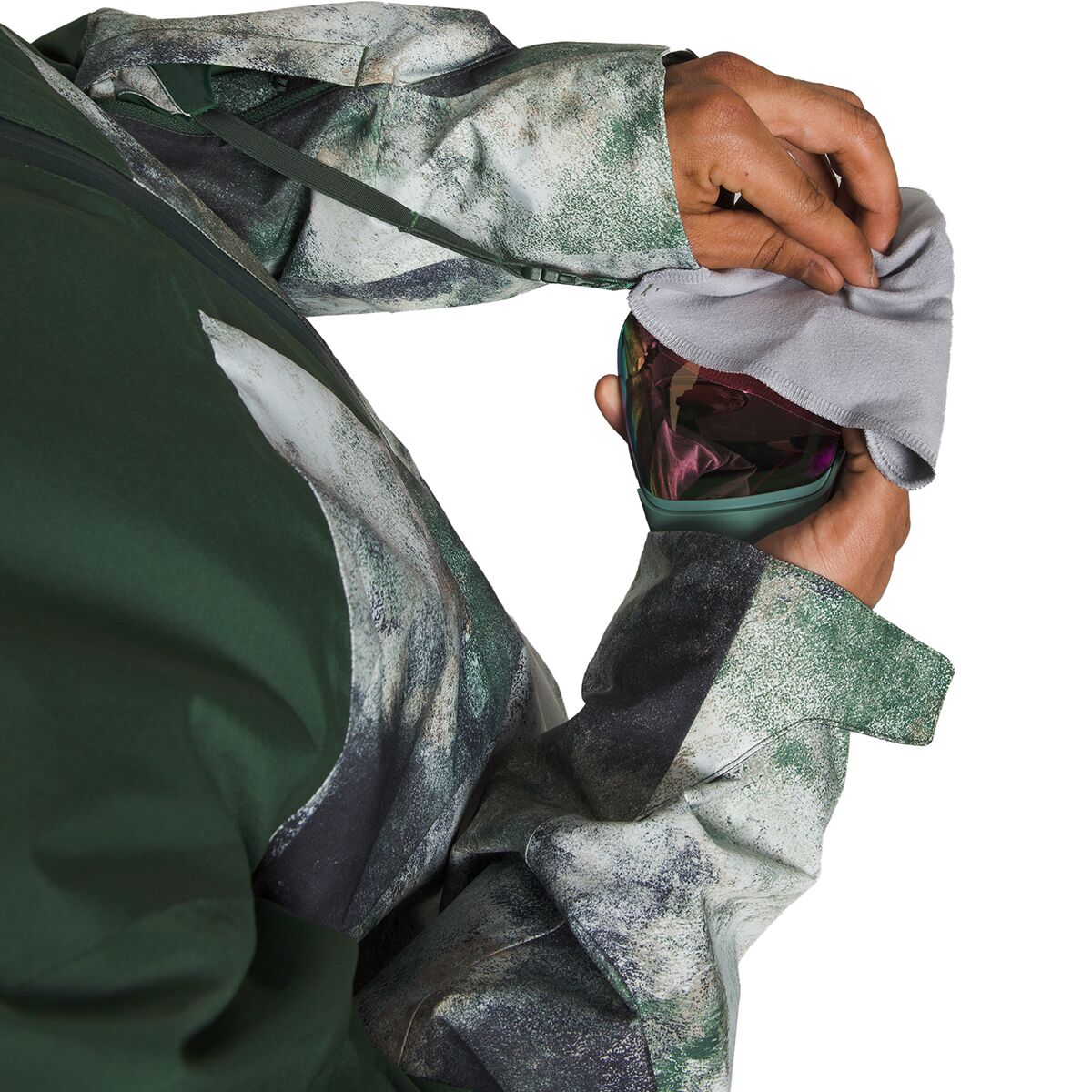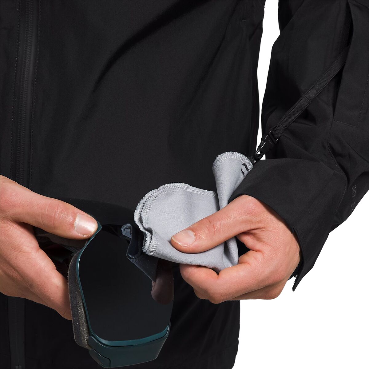 • Shell features adjustable hem, hood, and cuffs to seal out the cold
