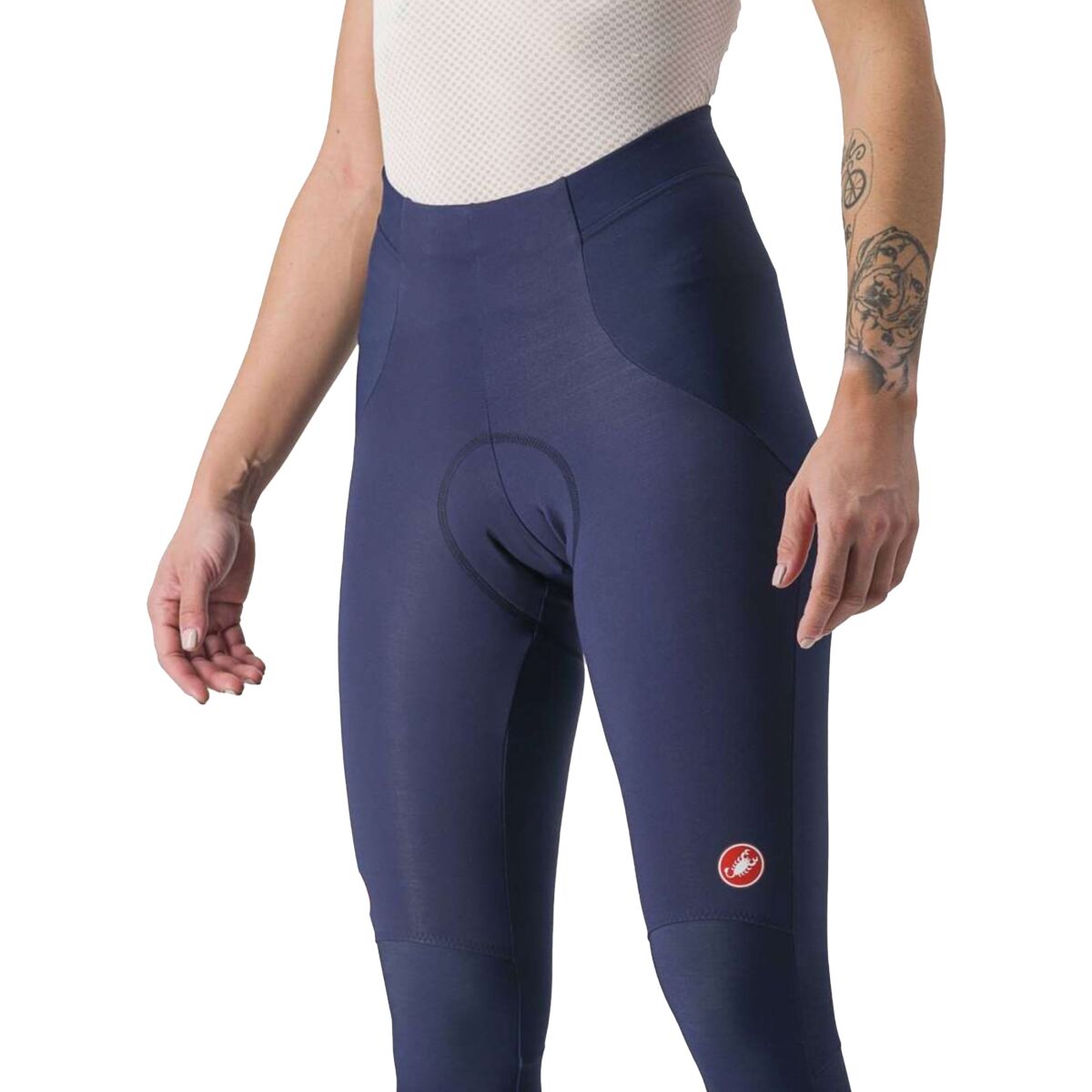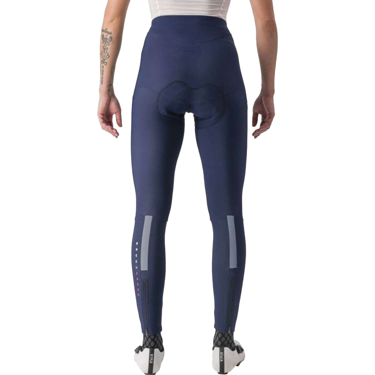 The Sorpasso RoS uses Castelli´s Progetto X2 Air seamless Donna chamois that is designed peak comfort and performance during long winter base miles. Reflective panels cover the calf zips for added security in low-light riding in the cold mornings, and the Sorpasso RoS is rated for rides ranging from 36-54 degrees F.