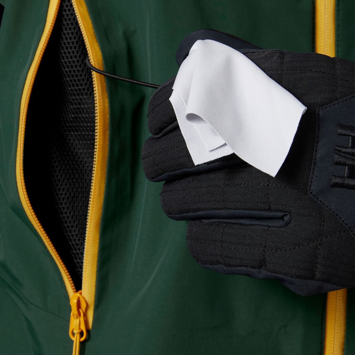• Three layer laminate seals out moisture while wicking away sweat