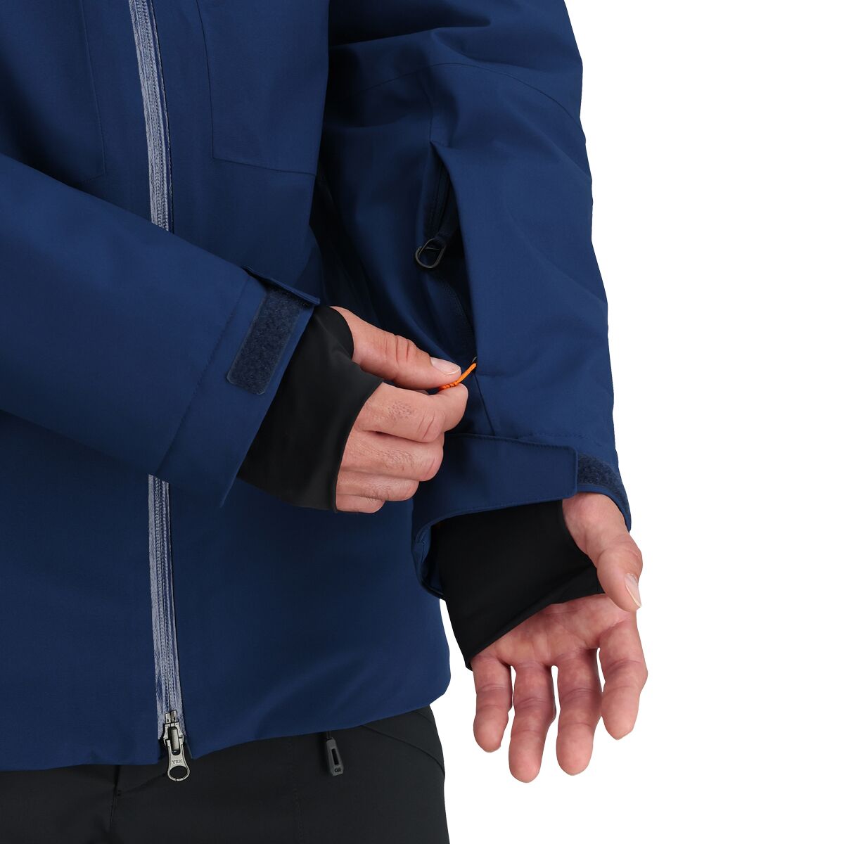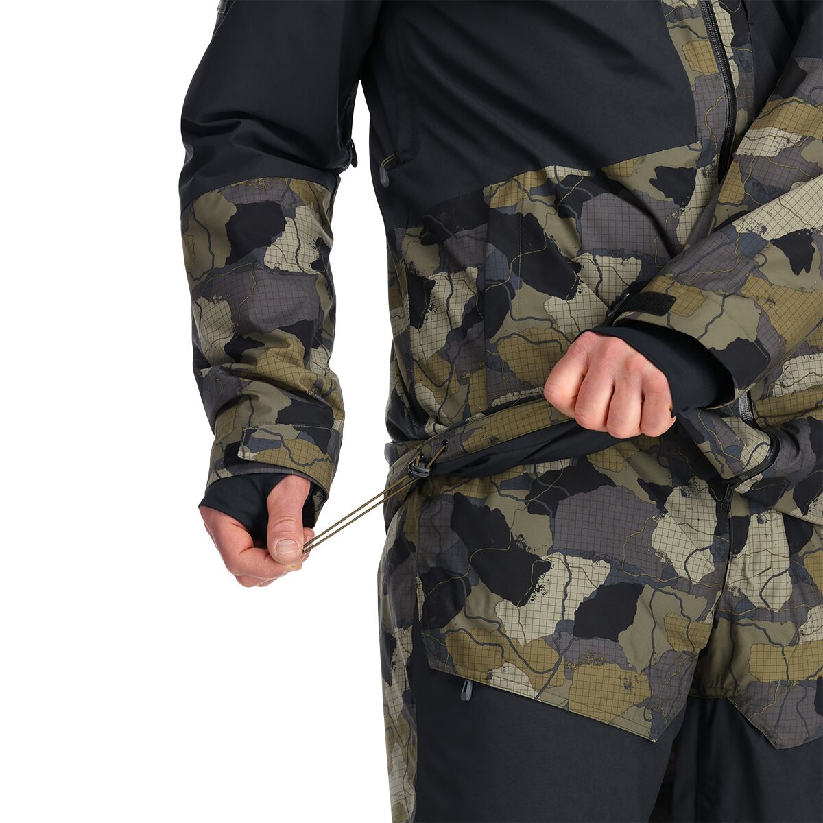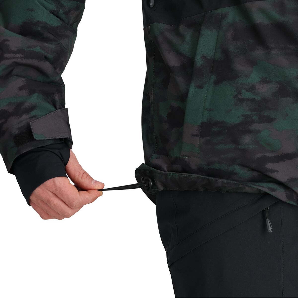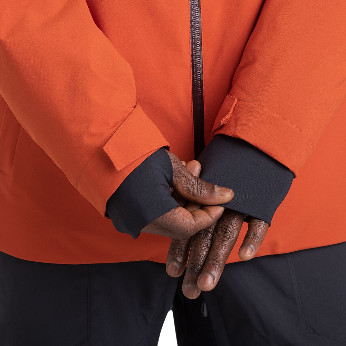 • Powder skirt and thumbhole wrist gaiters keep snow out of layers