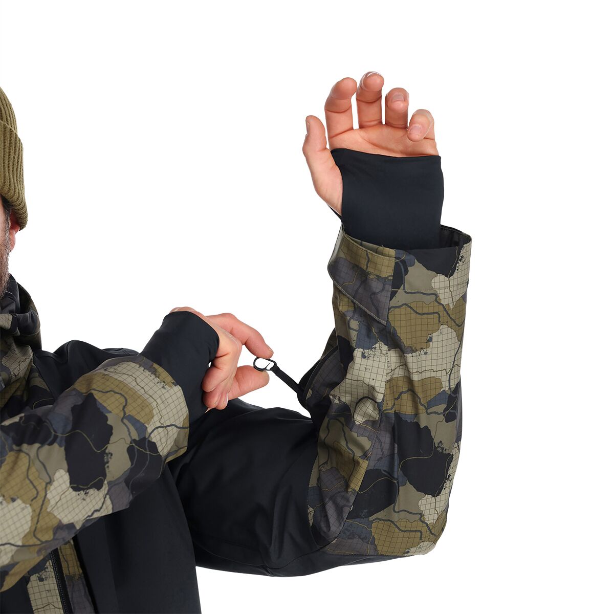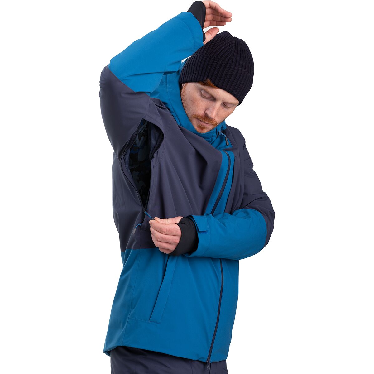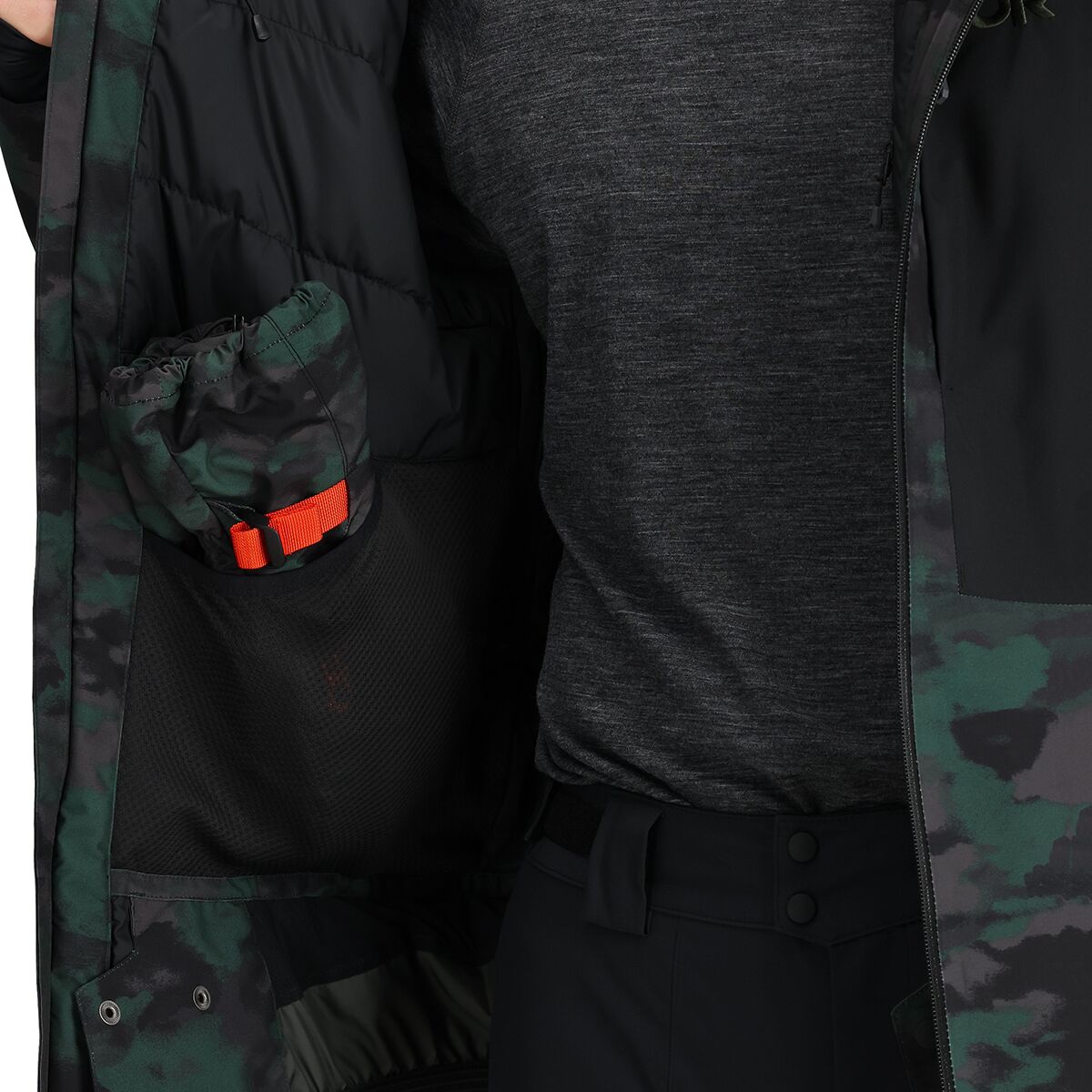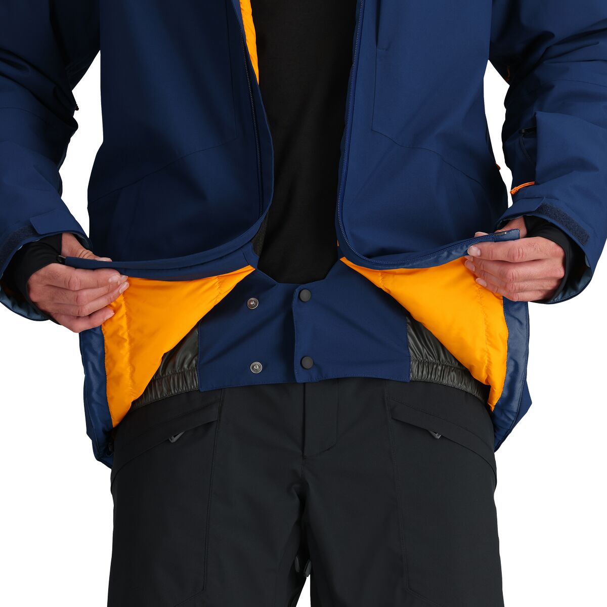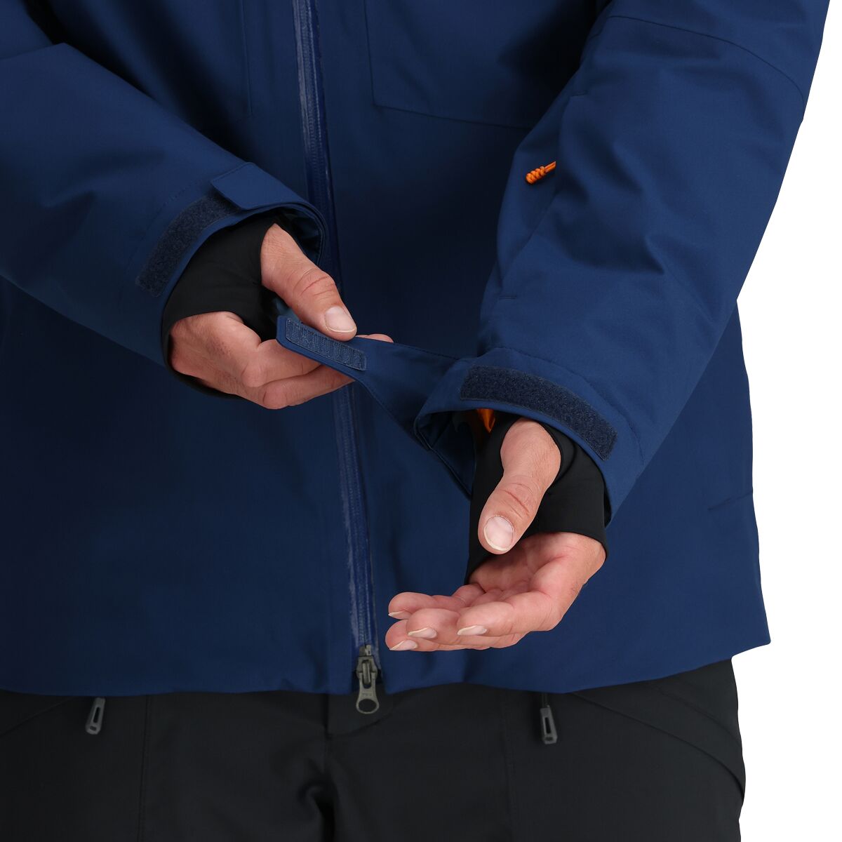 • Powder skirt and thumbhole wrist gaiters keep snow out of layers