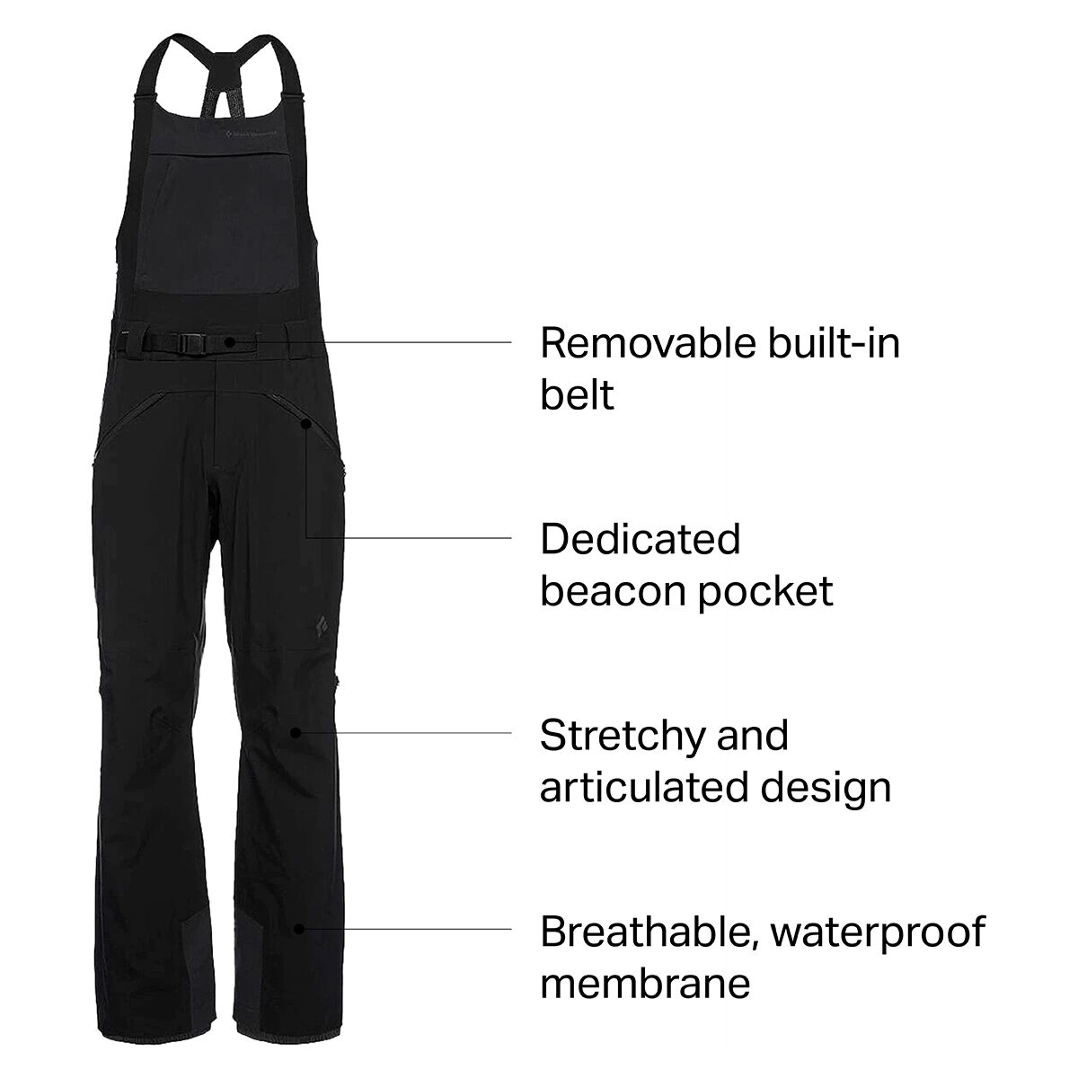• Bib pant for skiing the resort and backcountry