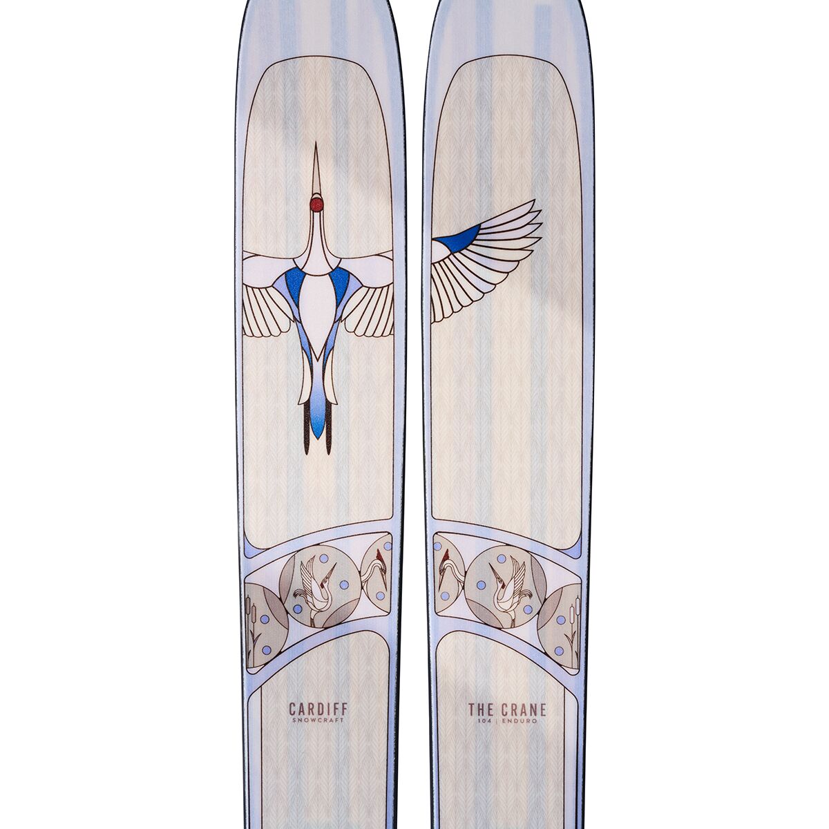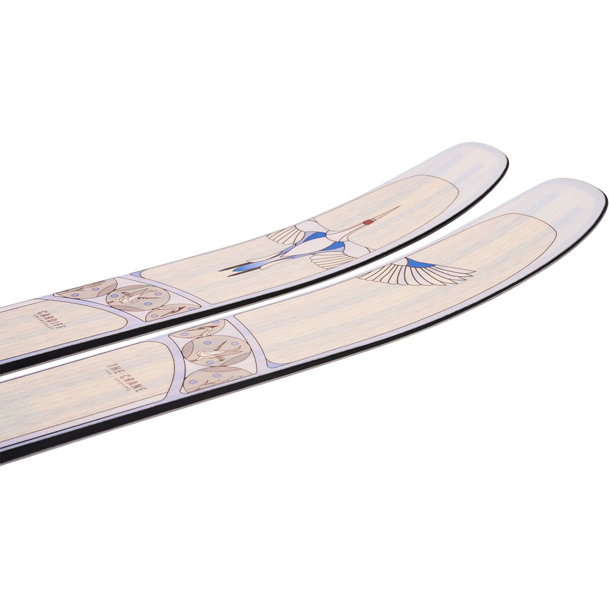 To glide down the mountain at mach speeds with grace, we click into Cardiff Snowcraft´s Crane Ski Enduro. The longer effective edge gives us greater stability at speed and lets us transition into our next turn quicker for optimal control down steep lines, while the core´s paulownia and poplar woods keep the ride playful and damp and the hold on our binding screws strong. Shaped with a narrower freeride waist and twin tips, this ski can carve up groomers, float in the deep, and fly off features.