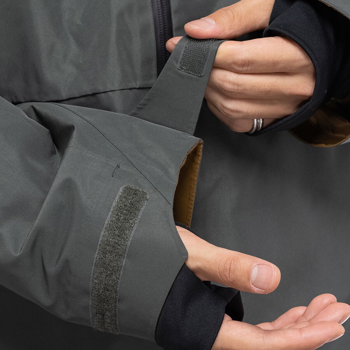 • Hook-and-loop cuff adjustments and gaiters seal out snow