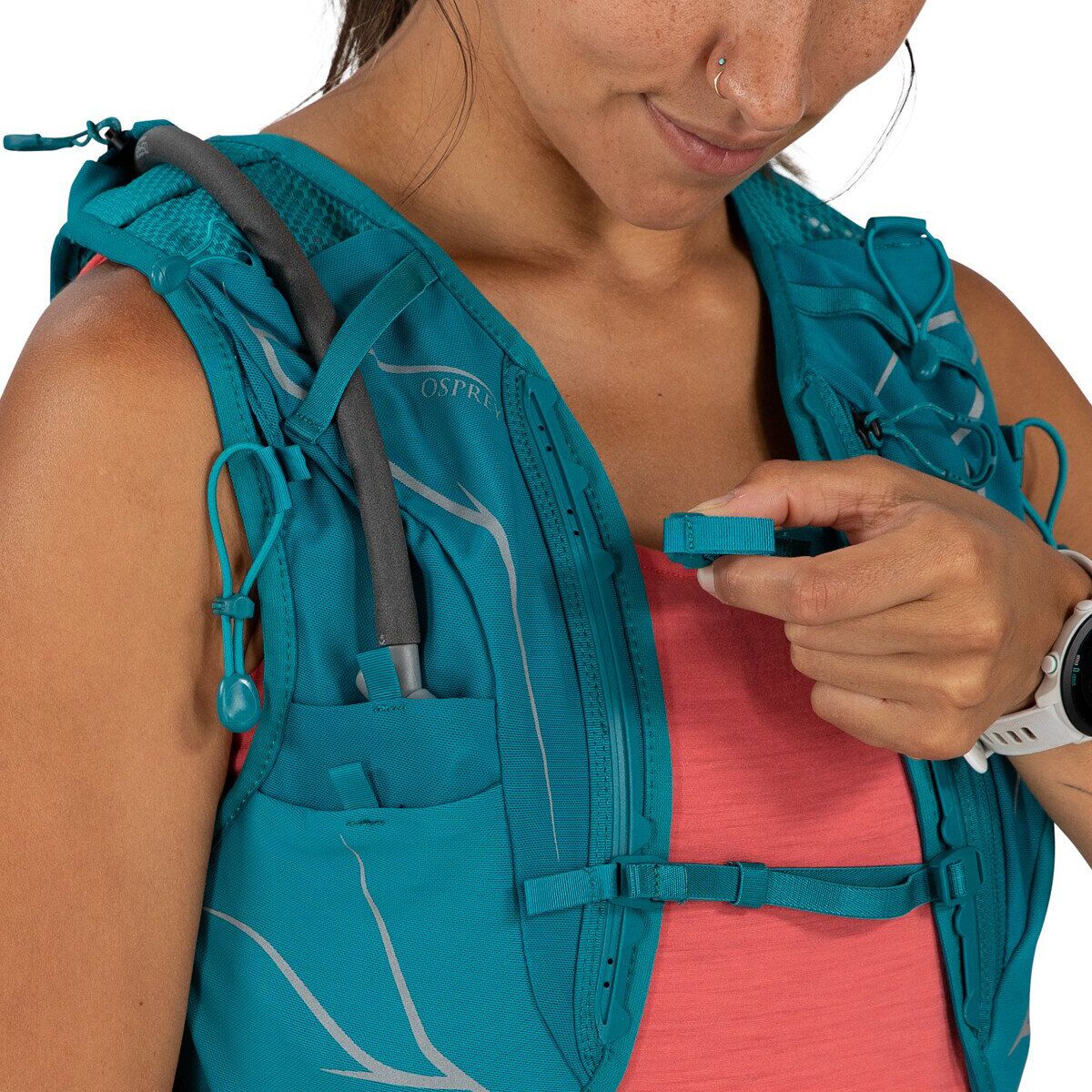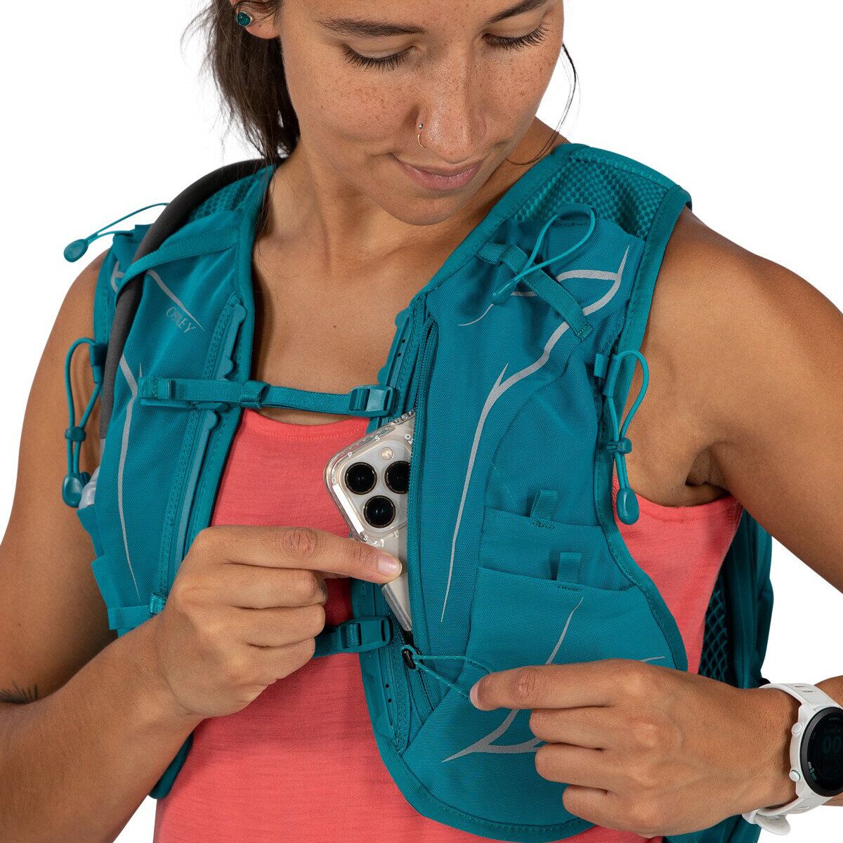 The Osprey Dyna 15L Backpack provides a dynamic fit without compromising the storage space or hydration needed for our unsupported marathons or ultra-running pursuits. A soft Airmesh body wrap and foam backpanel deliver a ventilated and comfy fit, while generous 360-degree pocket placement keeps our phone, snacks, and other essentials organized.