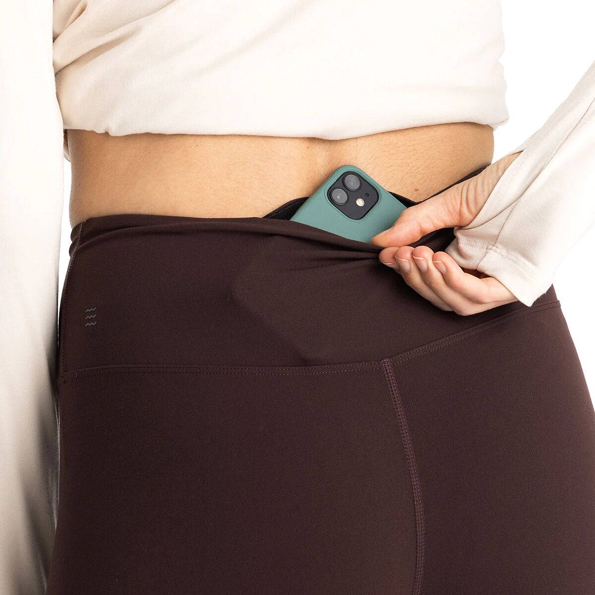 • Back waistband pocket stashes your keys