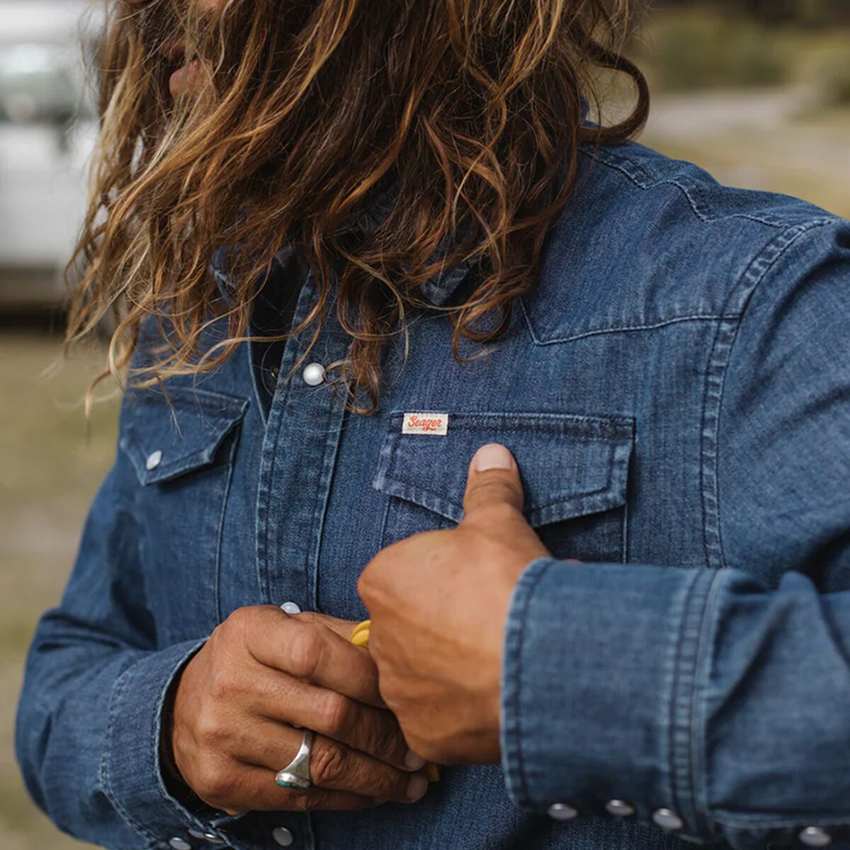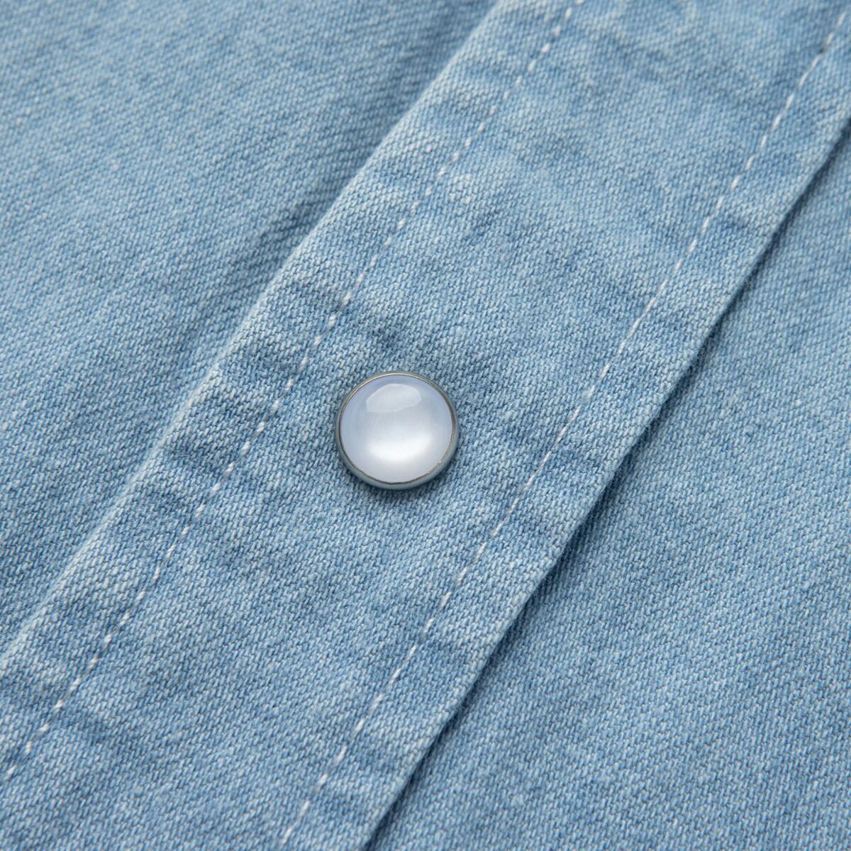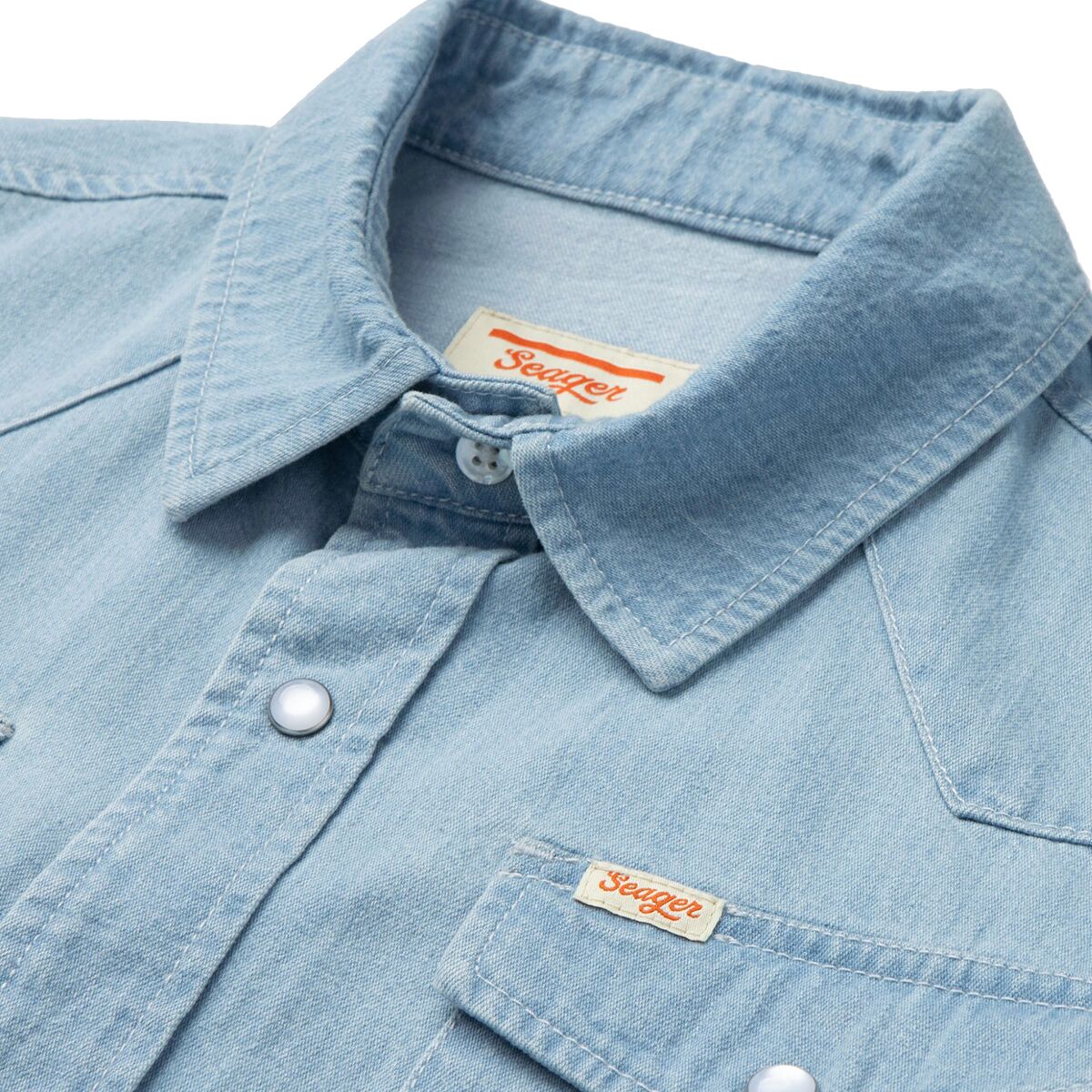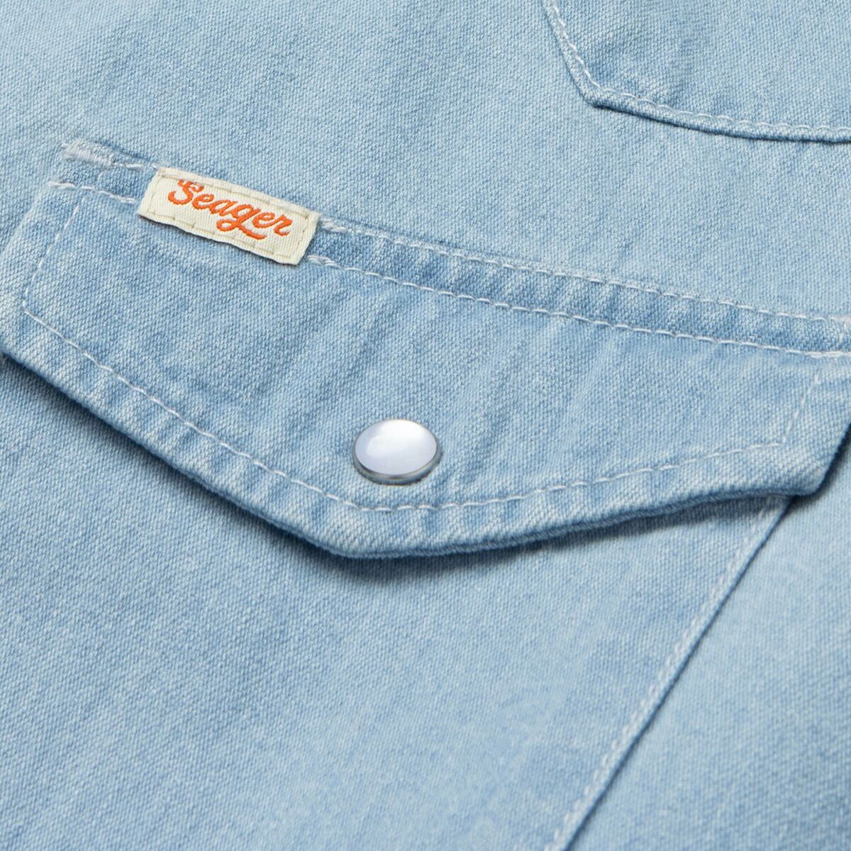 Why We Like The Seager Co Reagan Pearl Snap Shirt A traditional chambray shirt, the Seager Reagan Pearl Snap Shirt features a classic Western yoke and pearl snap buttons for a...