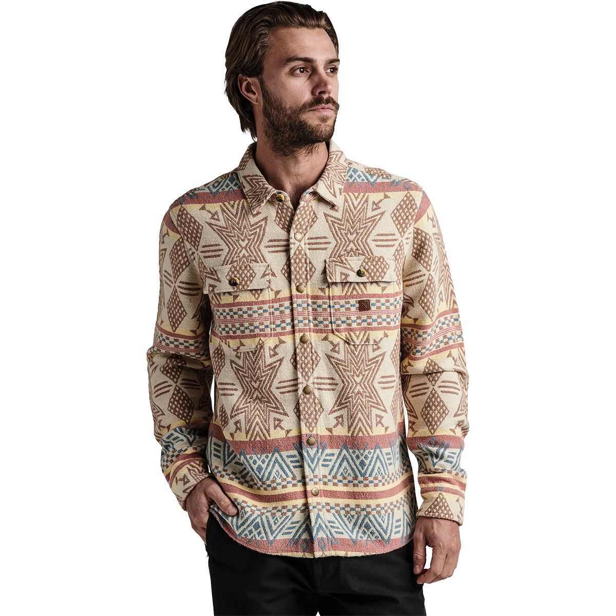 For rugged style from mountain towns to concrete jungles, we snap into the Roark Nordsman Teton Shirt. The thick cotton material beefs up our coverage when winter temps blow in, and the unique print and elbow patches have us standing out from the rest in the season´s sea of flannel-clad wanderers.