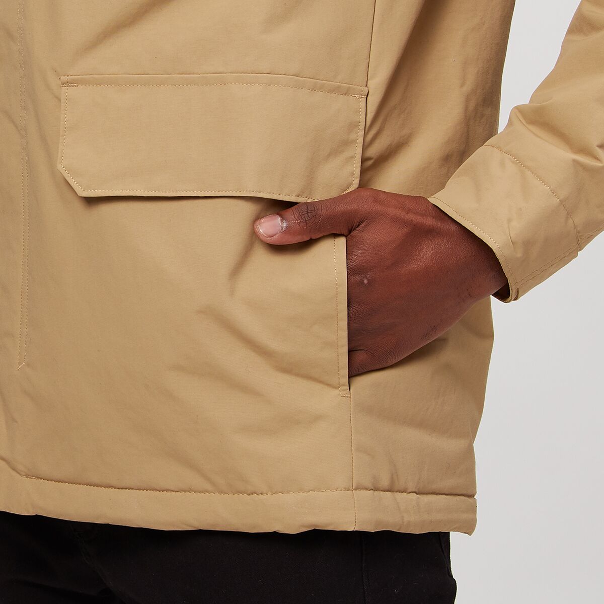 • Synthetic insulation in sleeves stays lofty in inclement weather
