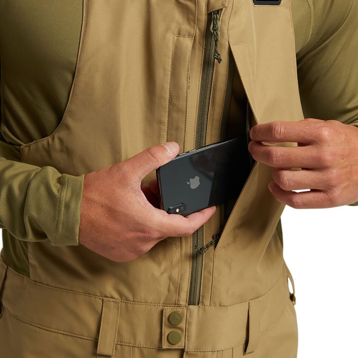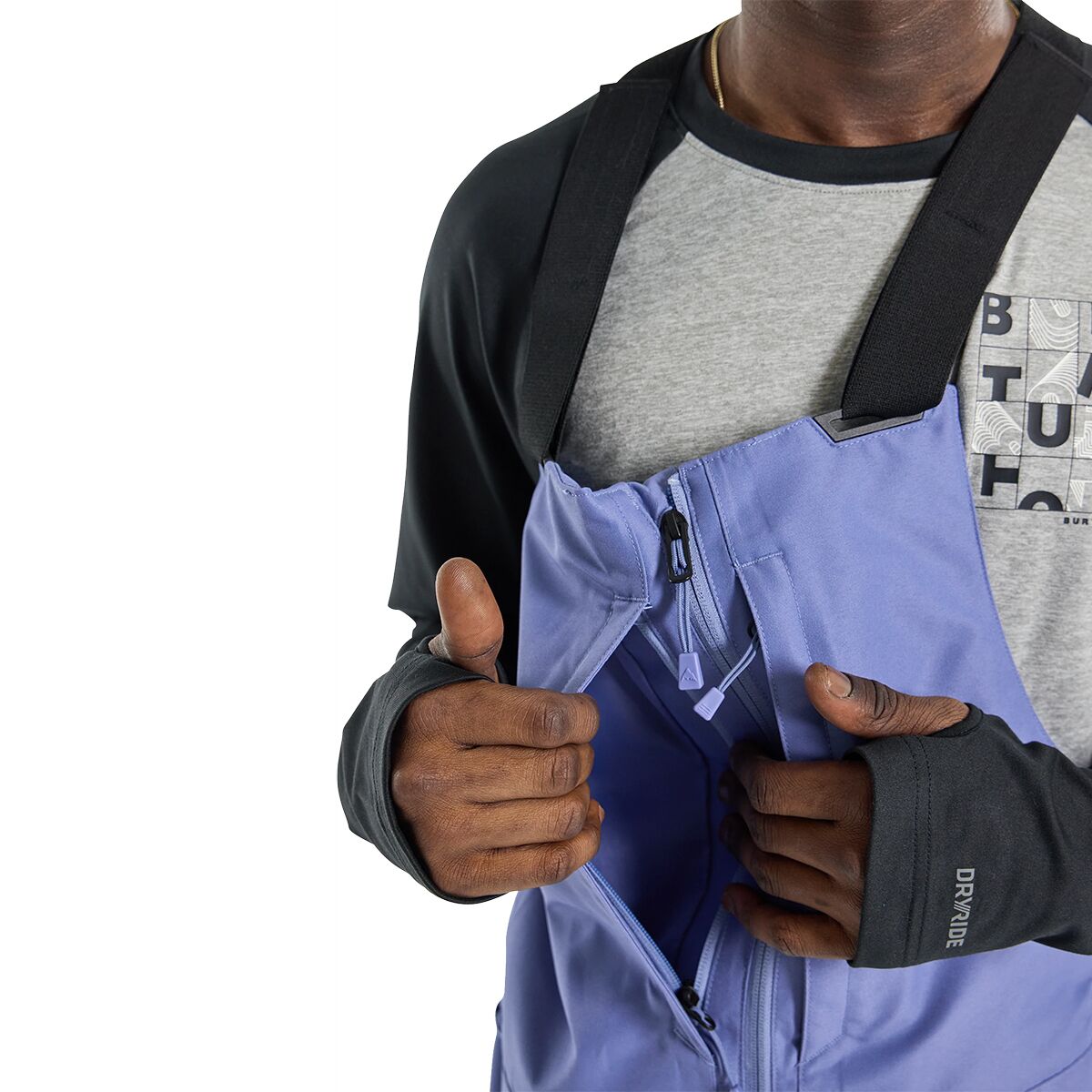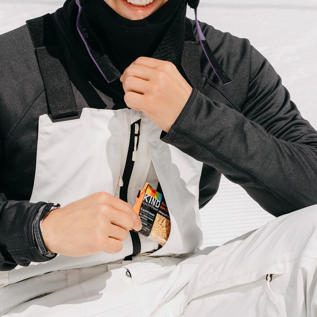 - Technical bib for extra coverage on powder days