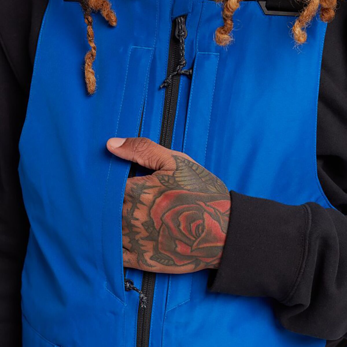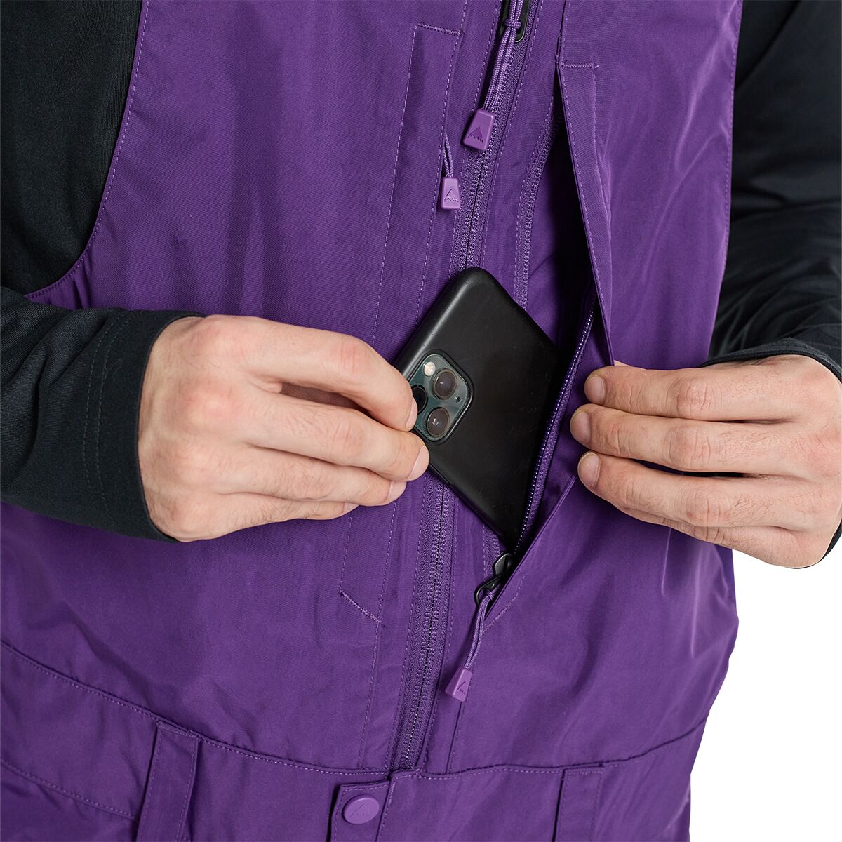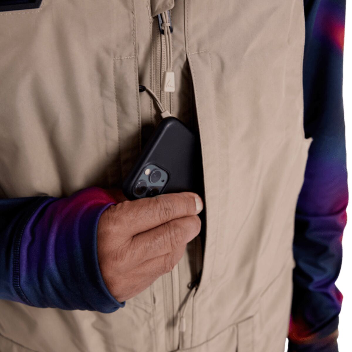 - Technical bib for extra coverage on powder days