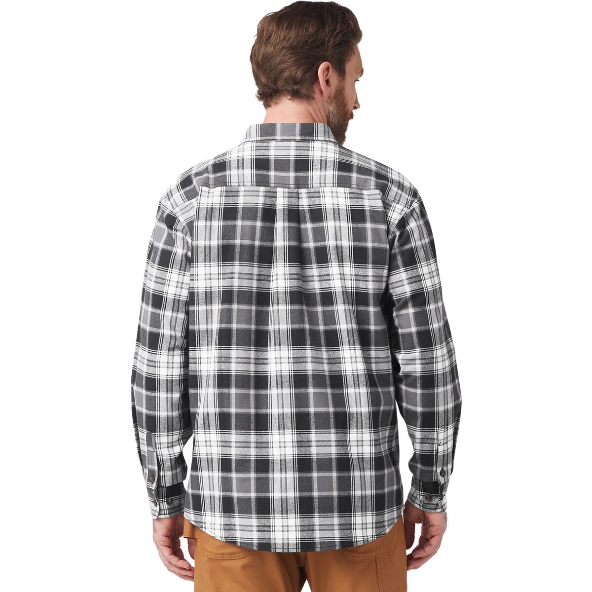 Keep your work uniform classic with a flannel shirt. This mens flannel features Flex fabric that stretches with you and never restricts your movement. It has a relaxed fit, chest pockets with a pencil division, and moisture-wicking properties to pull sweat away from the body, keeping us dry and comfortable.