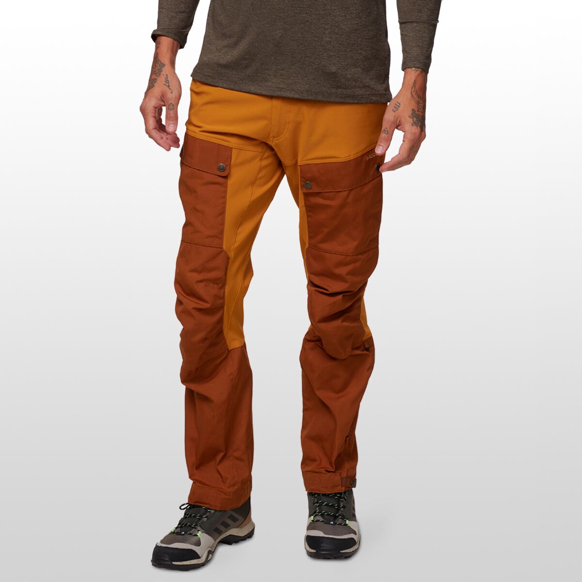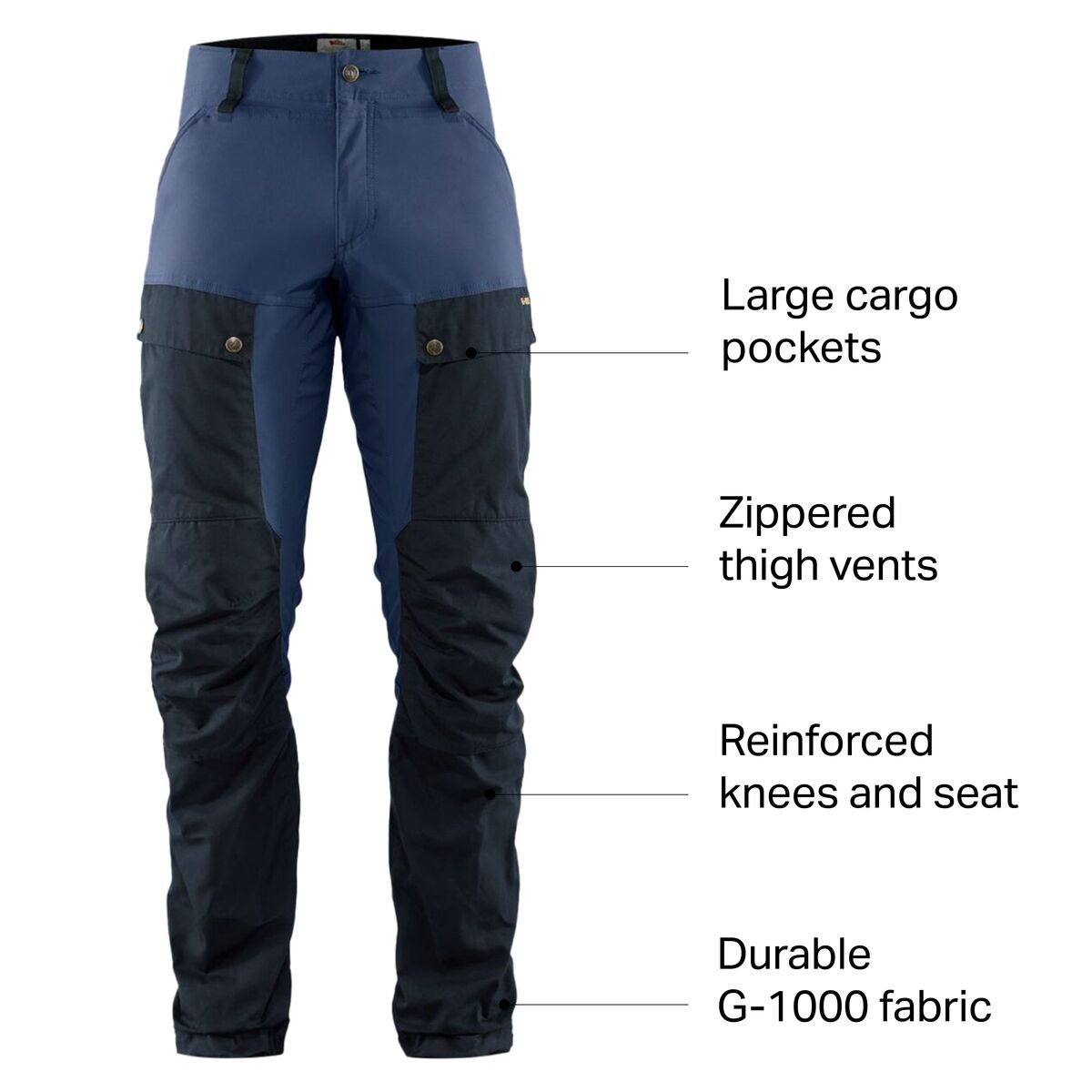 Built for our most rugged trails, the Fjallraven´s Keb Trouser is made of a tough, stretchy fabric and reinforced with G-1000 Eco panels for serious freedom of movement and durability. The articulated knees have extra-strong seams so we don´t blow them out, while zippered vents and an extended fly keep us cool when the going gets hot.
