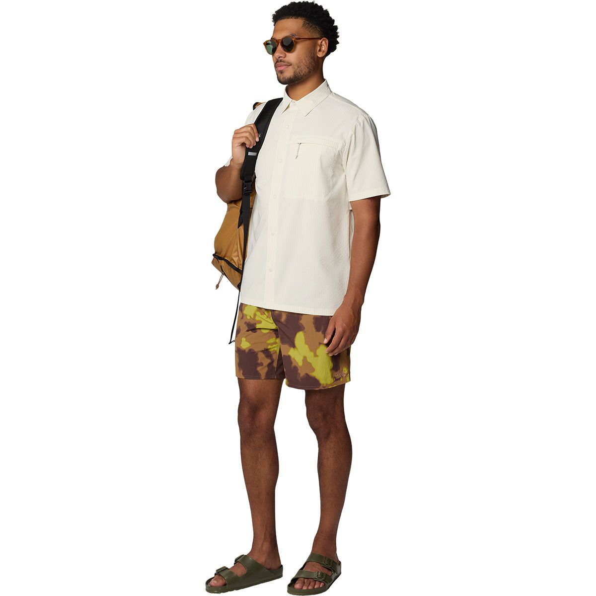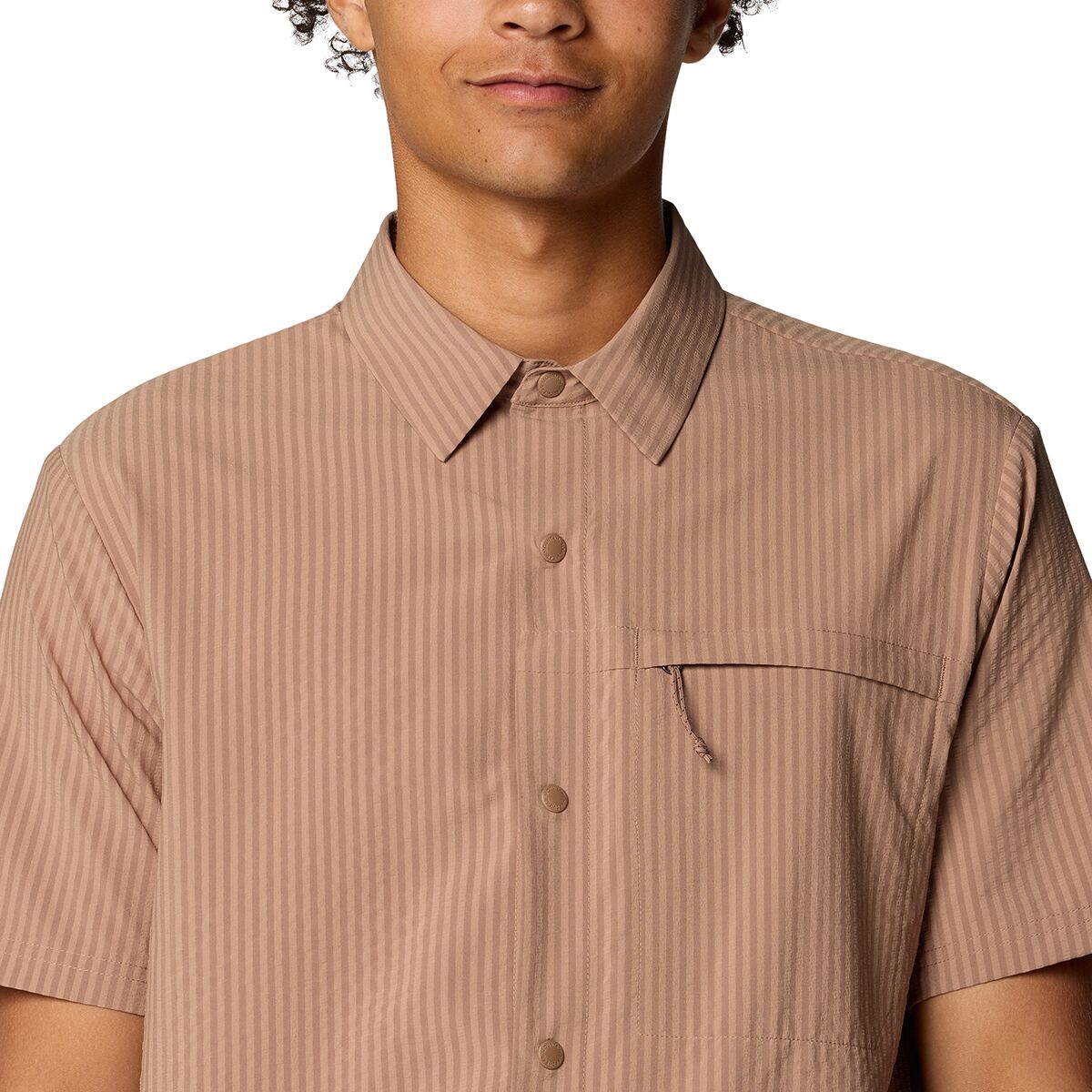 - Lightweight short-sleeve button-up for travel, hiking, and warm-weather wear