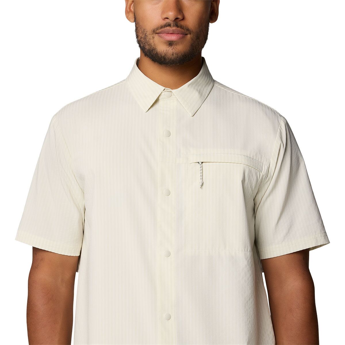 "This is my go-to summer button-up for everything from trail hikes to backyard BBQs. The seersucker fabric keeps air flowing, and the mesh back panel adds extra ventilation on hot days. Plus, the zippered chest pocket doubles as a stow pocket, making it easy to pack when I’m on the move."