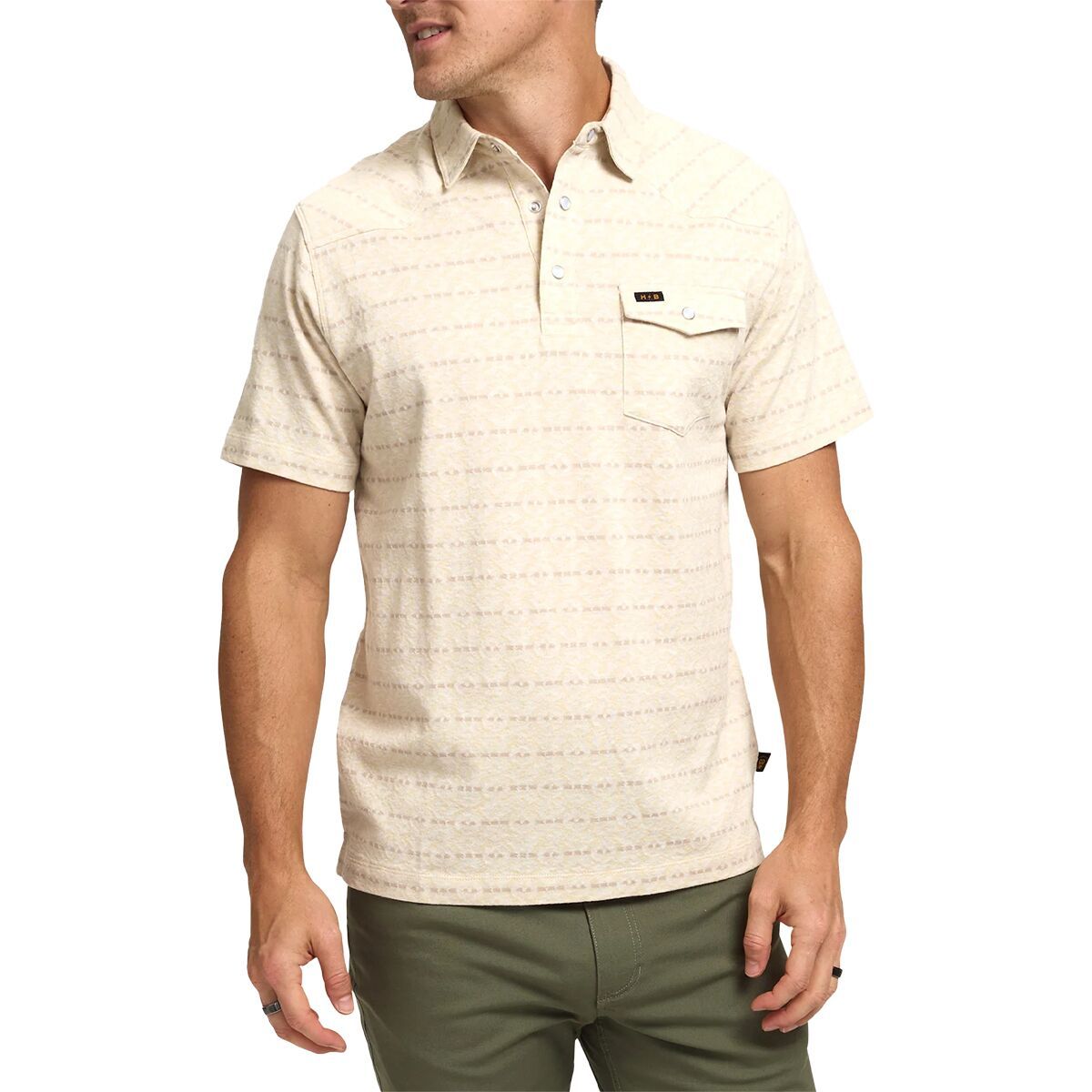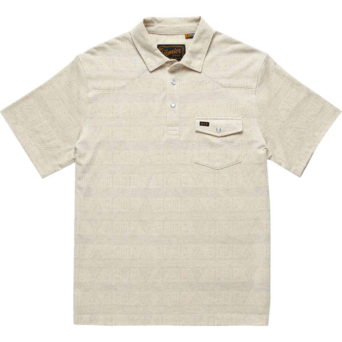 The Howler Brothers Ranchero Jacquard Polo Shirt is a soft, comfortable cotton jacquard polo designed with a straight hem for a classy everyday look.