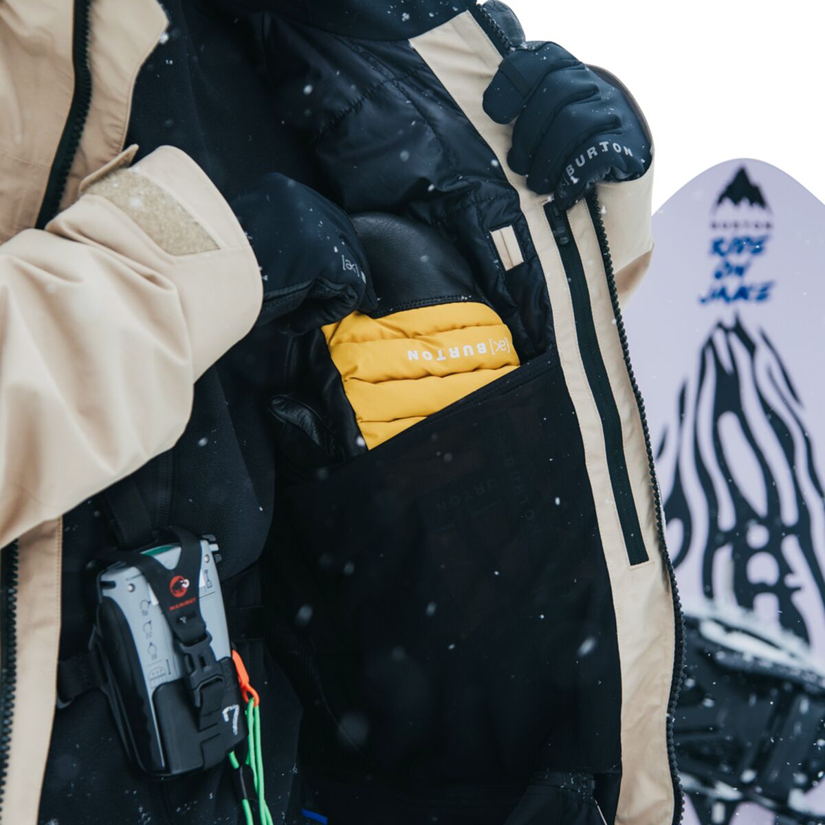 • Technical snowboarding jacket for the deepest powder days