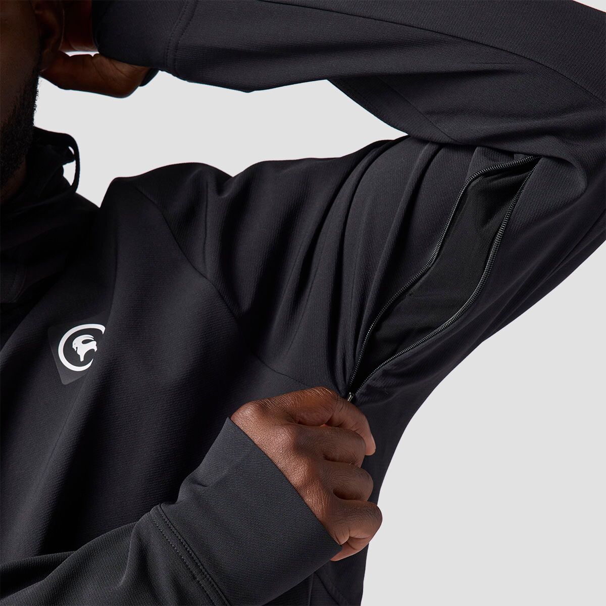 - Concealed, zippered underarm vents provide cooling airflow