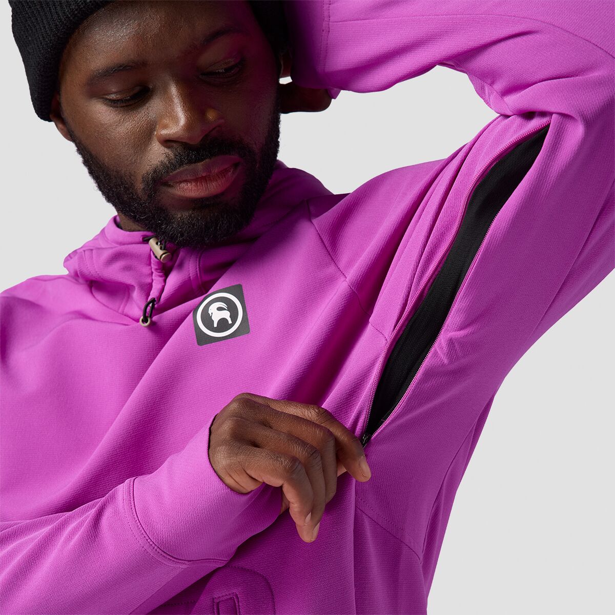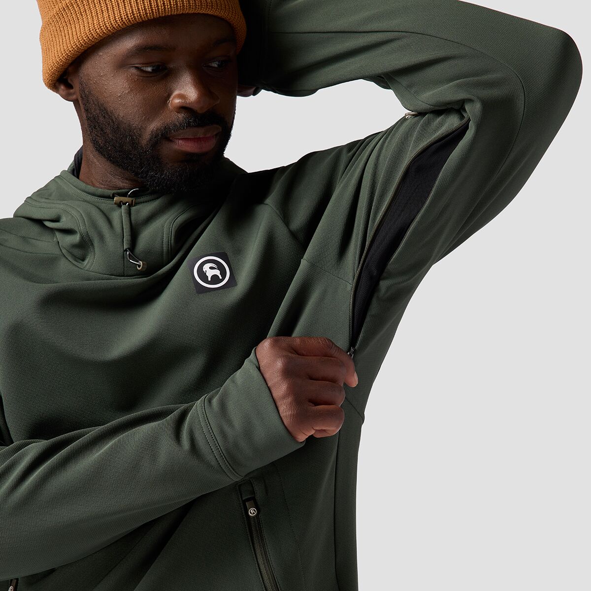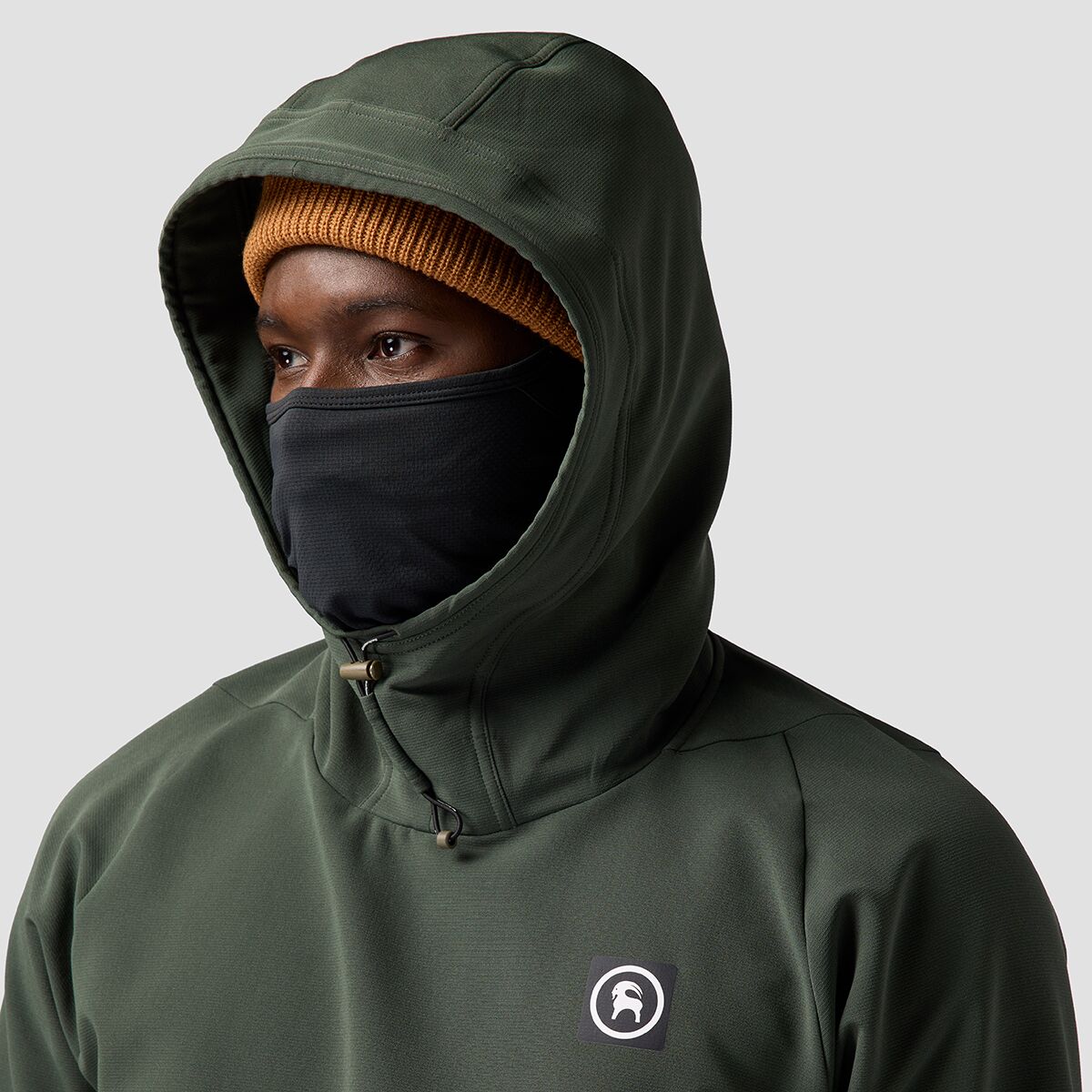 The Backcountry Destination Softshell Fleece Hoodie is made for bright, clear days at the resort. The water-resistant softshell material keeps us protected if we take a spill on a slick spot, and the cozy fleece offers lightweight warmth for full days in the mountains. The hoodie has a built-in facemask that shields us from wind and sun with UPF 50+ sun protection, and the scuba-style hood is easily adjustable to block out the elements. Zippered underarm vents allow us to cool down fast when the sun starts beating down, and the stretch material lets us move freely as we carve through the springtime snow.