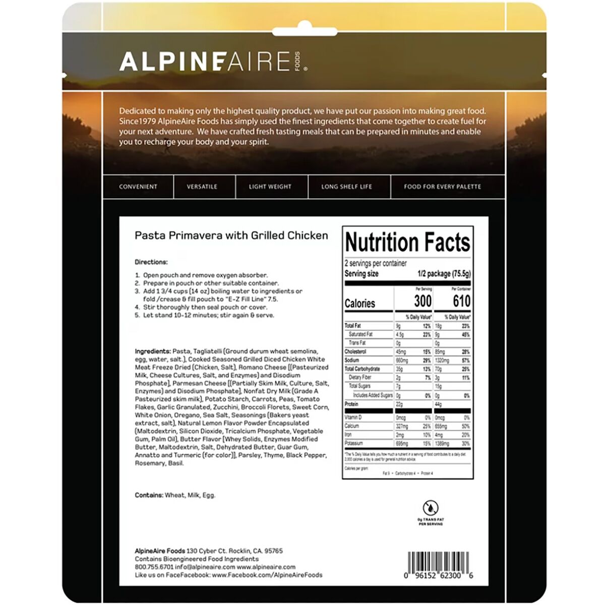 When we’re looking for a fresh, flavorful meal after a long day outdoors, AlpineAire’s Pasta Primavera with Grilled Chicken hits the spot. A light, creamy sauce coats tender pasta, while grilled chicken and a medley of colorful vegetables add texture and flavor. It’s the perfect balance of comfort and nutrition, keeping us fueled for whatever adventure comes next.