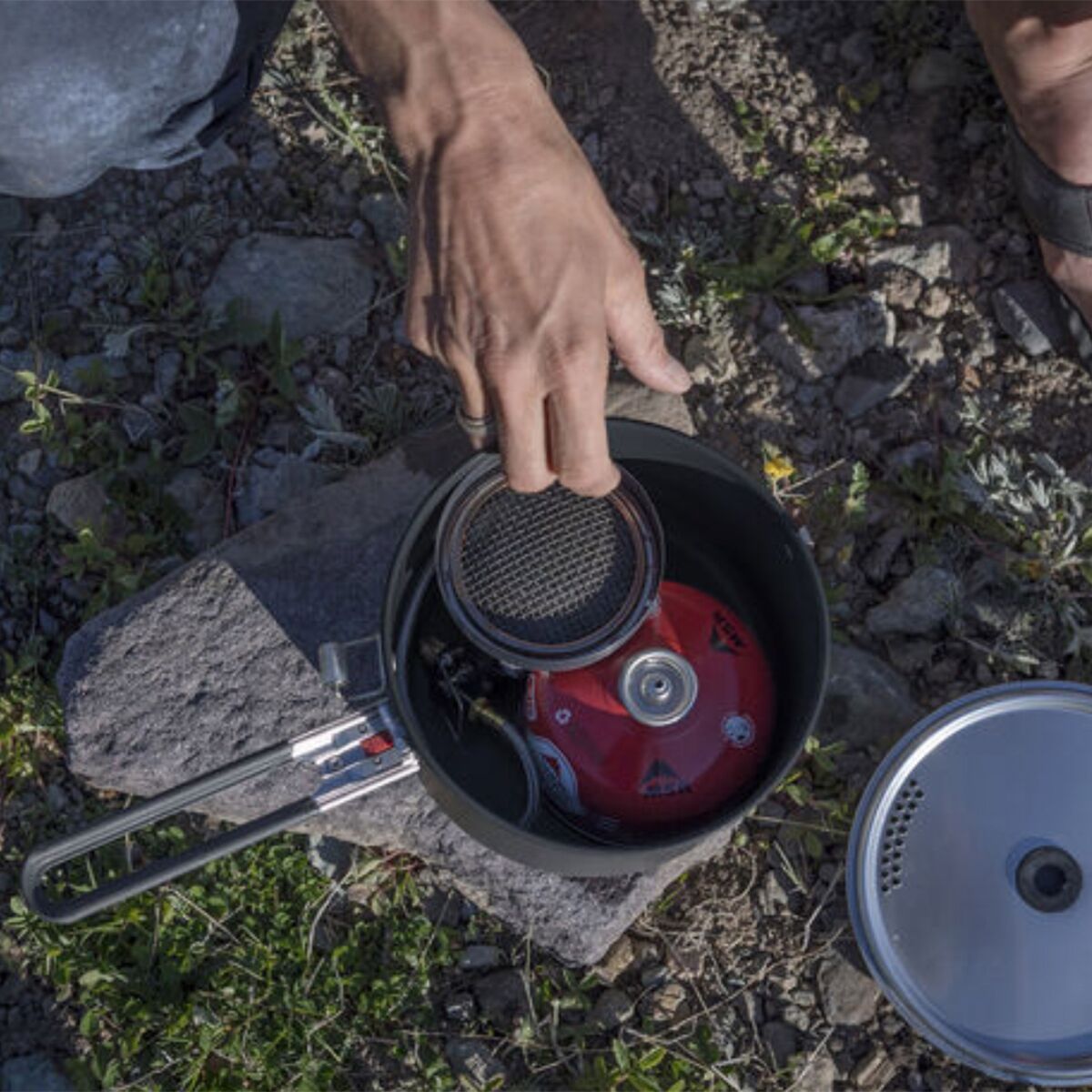 When cooking up a meal in the wilderness after a full day of activities, our Windburner Sauce Pot helps us heat the water for noodles before using it to simmer our sauces for a hearty meal before bed.