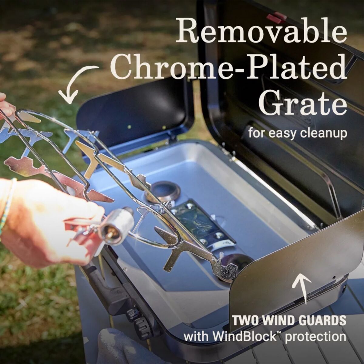 • 3-burner design allows you to cook sides and main course