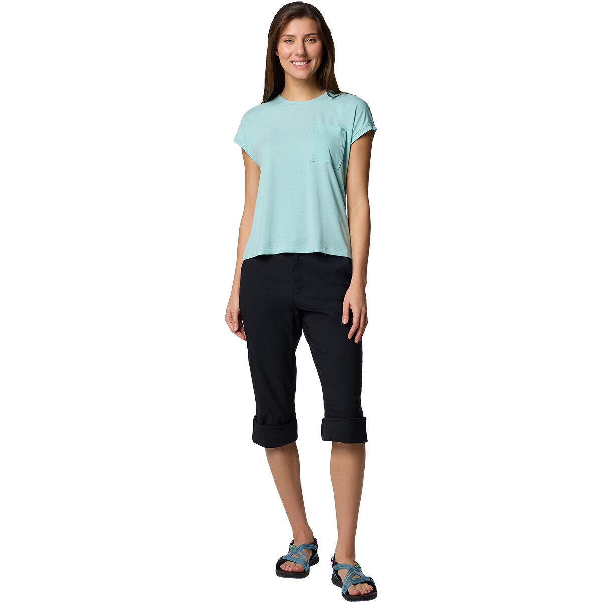 "These capris are a great option for hiking or casual wear. The lightweight fabric moves with me, and the built-in Omni-Shade™ keeps my legs protected from the sun. I love the adjustable cuffs, which let me switch up the length depending on the terrain or weather. The stain resistance is a bonus, making them great for travel or outdoor adventures."