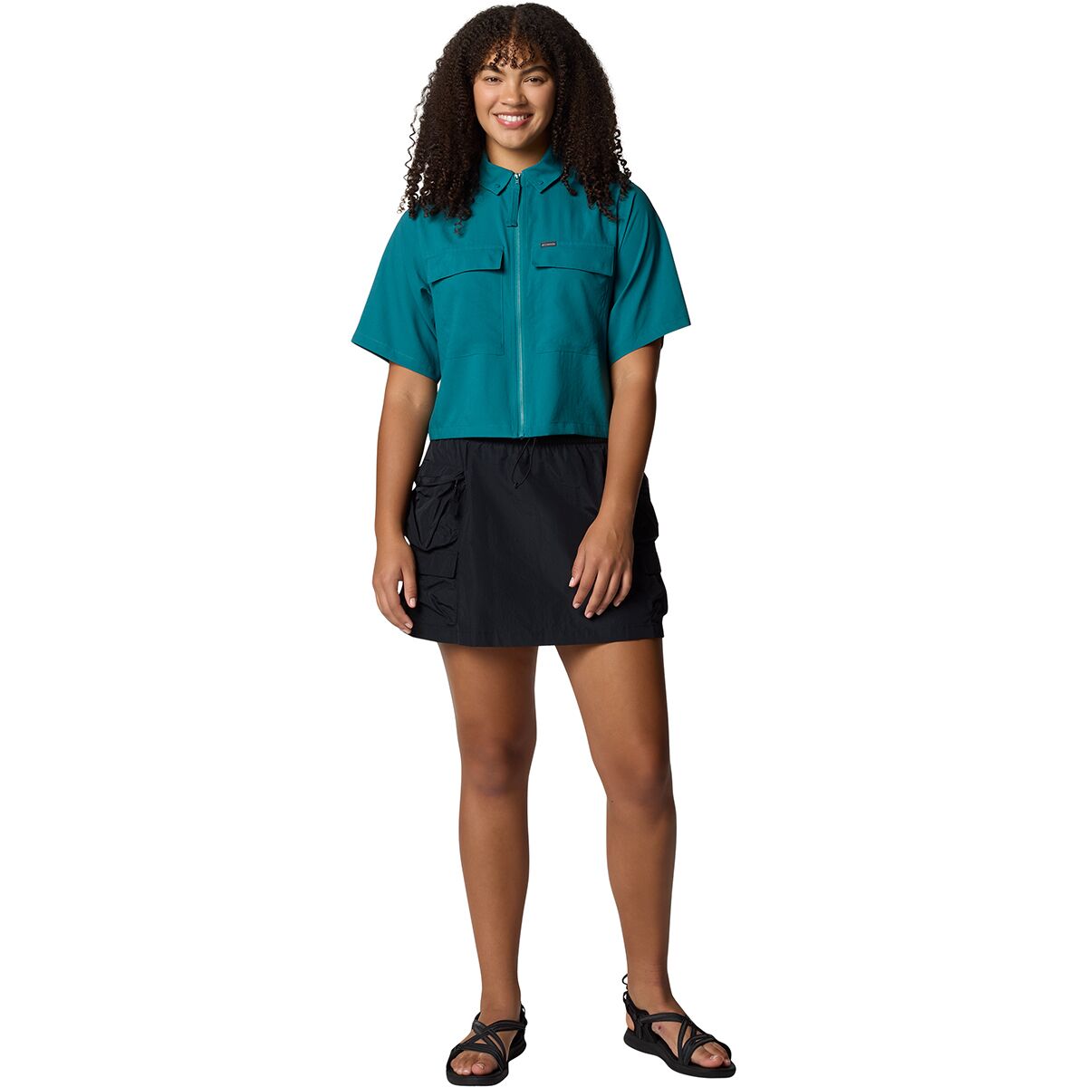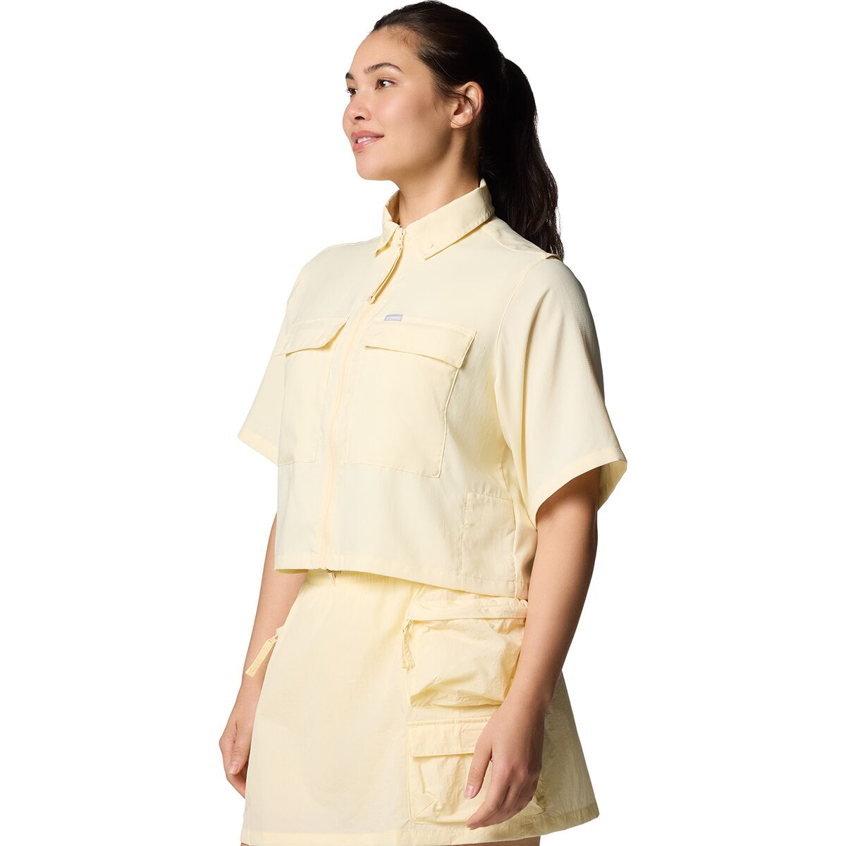 • Cropped zip-up shirt for adventures in style