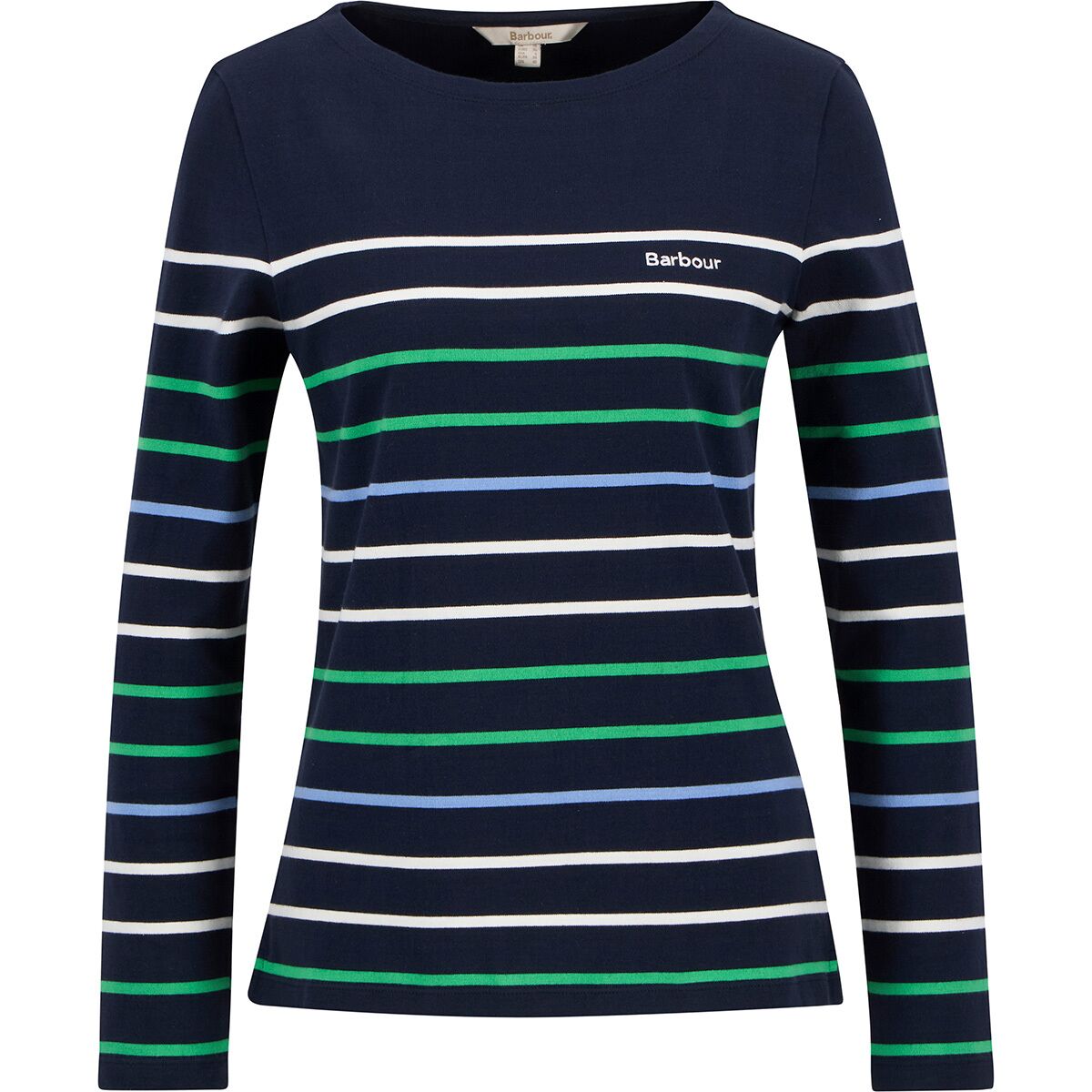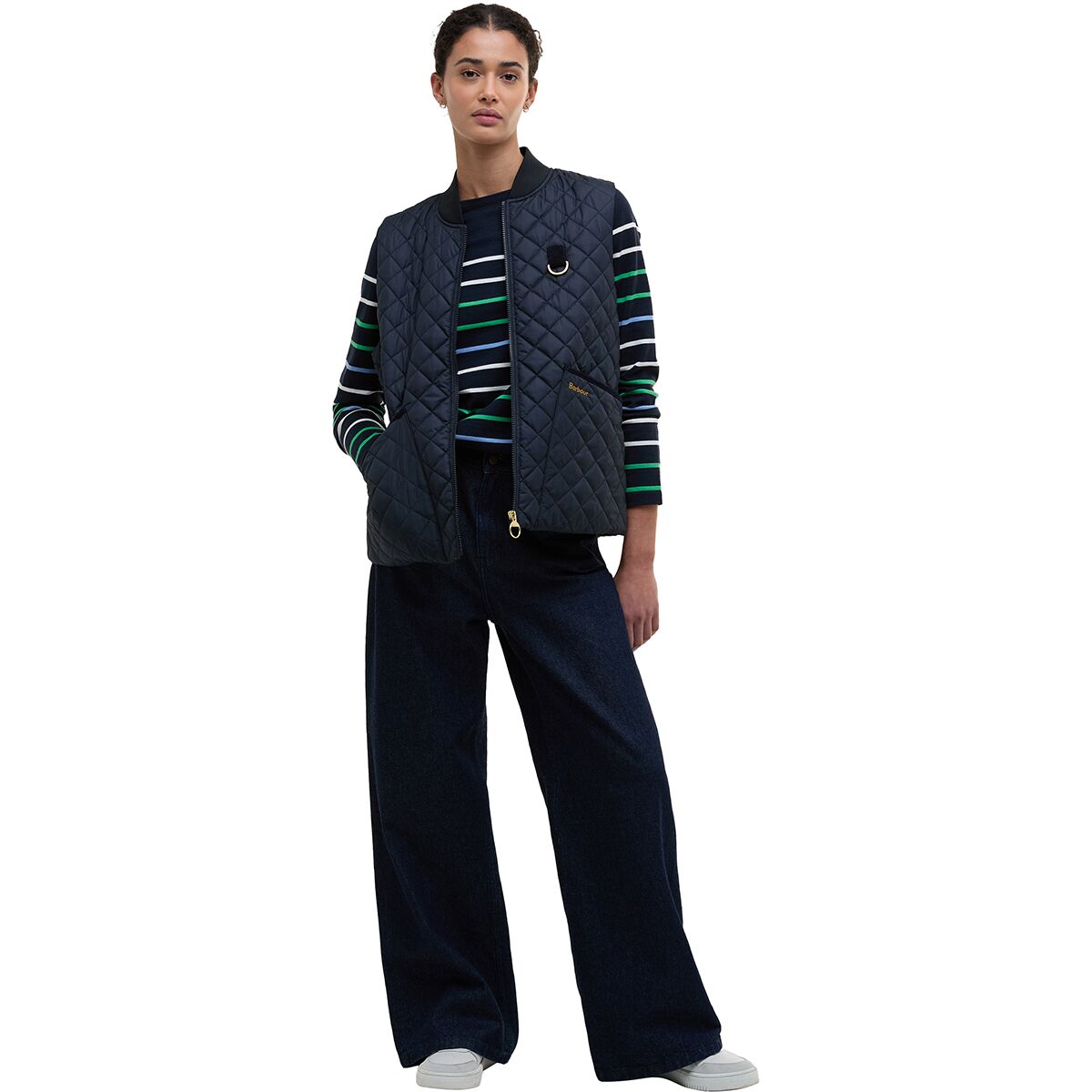 "This top has that effortless coastal vibe I love—super soft, breathable, and pairs with literally everything. The updated stripes feel fresh, and the subtle Barbour logo adds just the right touch of detail."