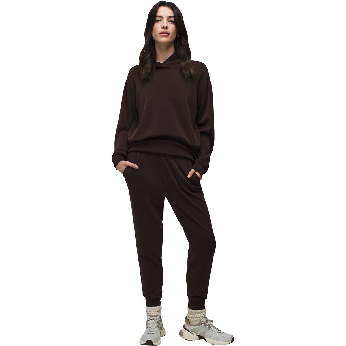 The prAna Shea Jogger feels silky against our skin as it follows our flow on the mat. The blend of Tencel, polyester, and elastic fibers gives us the breathability and stretch we need to deepen our poses, while its impossibly soft feel has us pulling this pair on for our days in too.