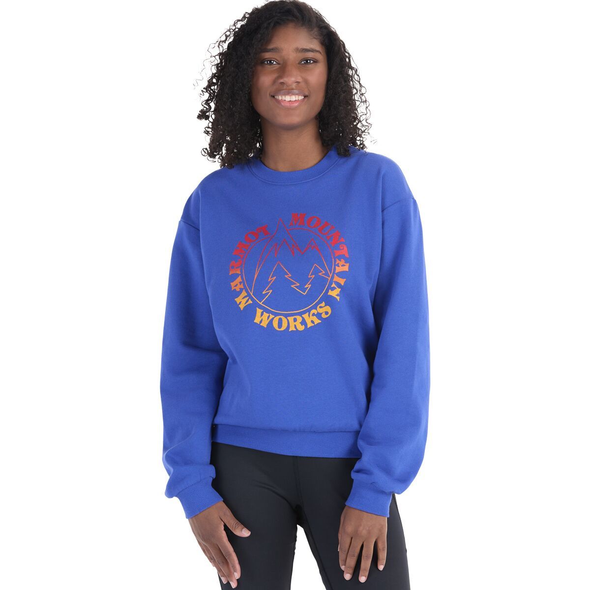 This boxy crew sweatshirt is a throwback to the early days of Marmot mischief and mountain mayhem. Cut from a blend of cozy cotton and post-consumer recycled polyester fleece for comfort that can outlast your longest days and latest campfire nights. This short-cut crewneck is rugged enough for casual out and backs, cute enough to wear out and about, and comfy enough for hunkering down at home or at camp.