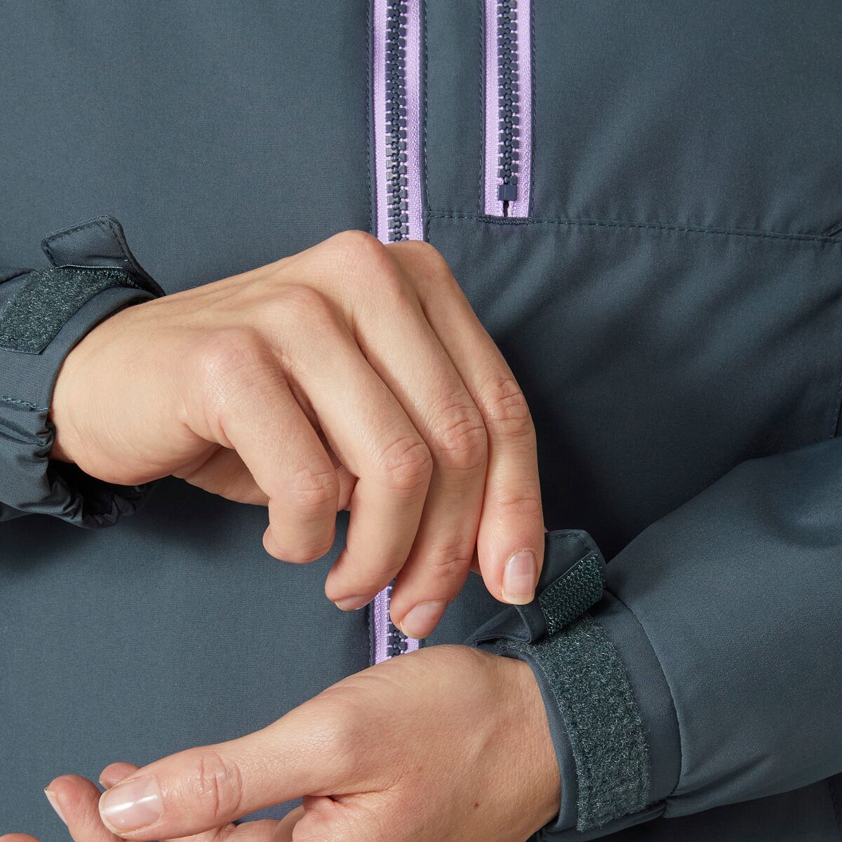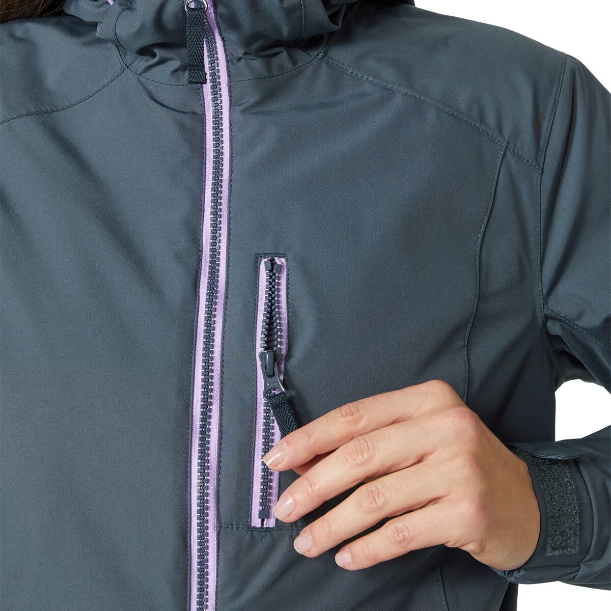 • Zippered hand pockets warm your fingers and secure your devices