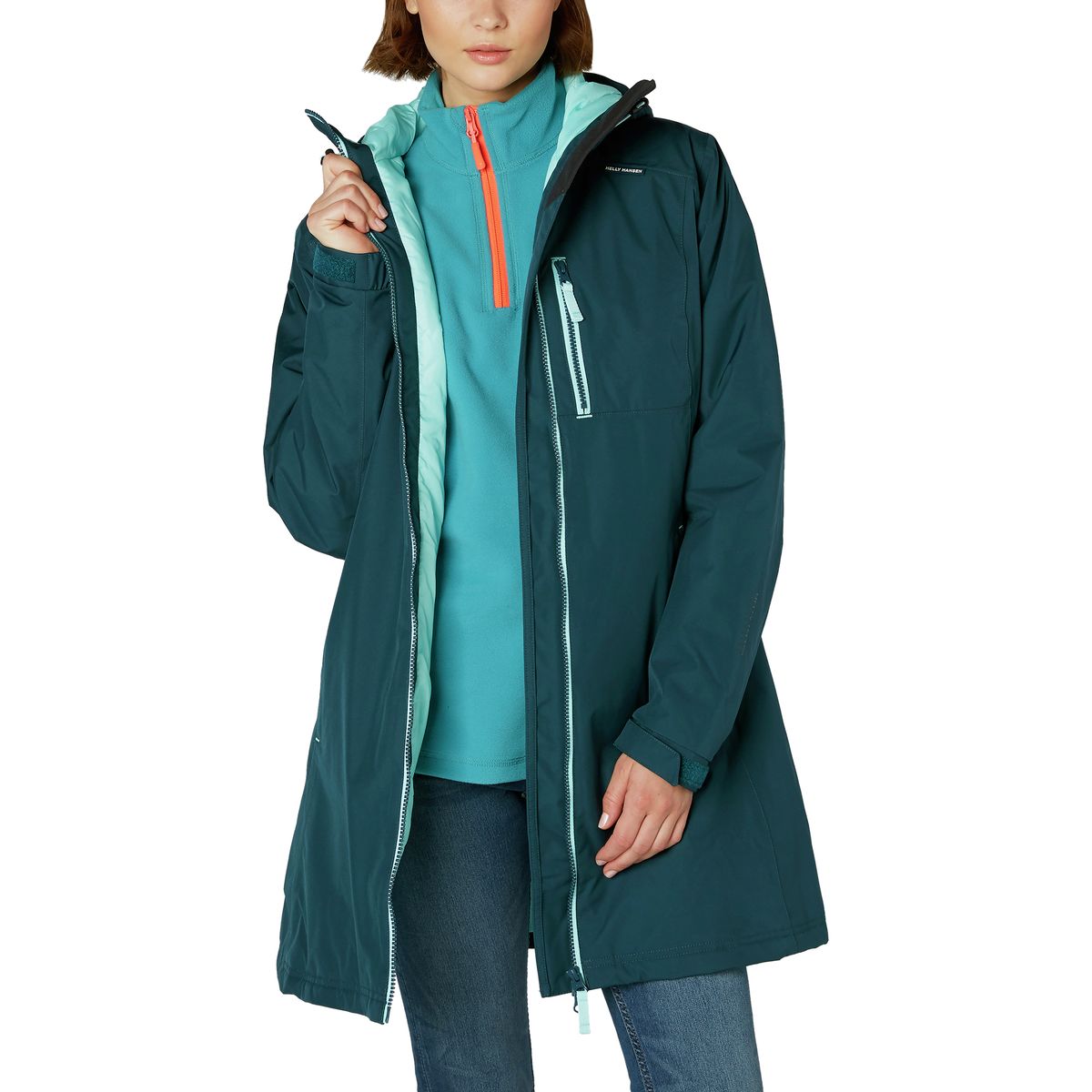 • Thigh-length jacket lets you keep your agenda no matter the weather