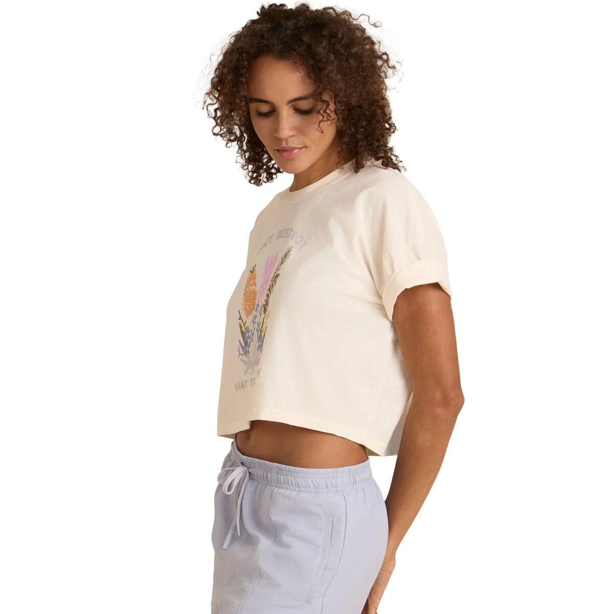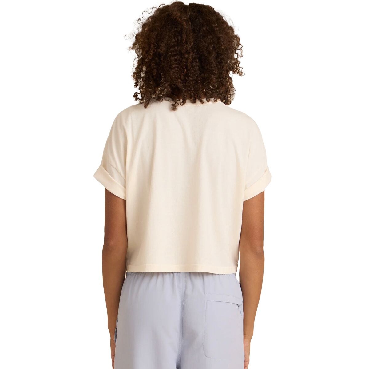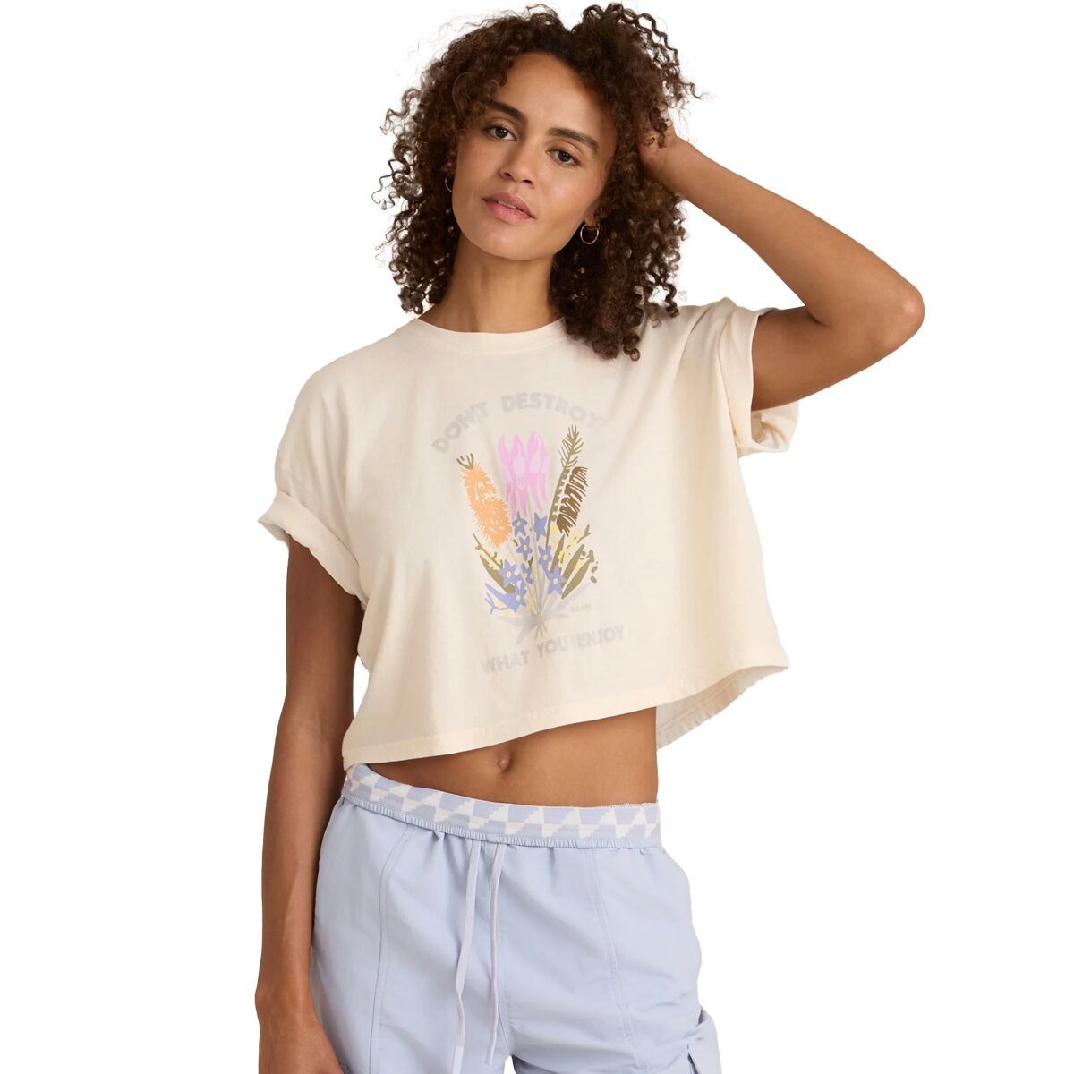 - Cropped, boxy tee for casual outings, layering, or lounging