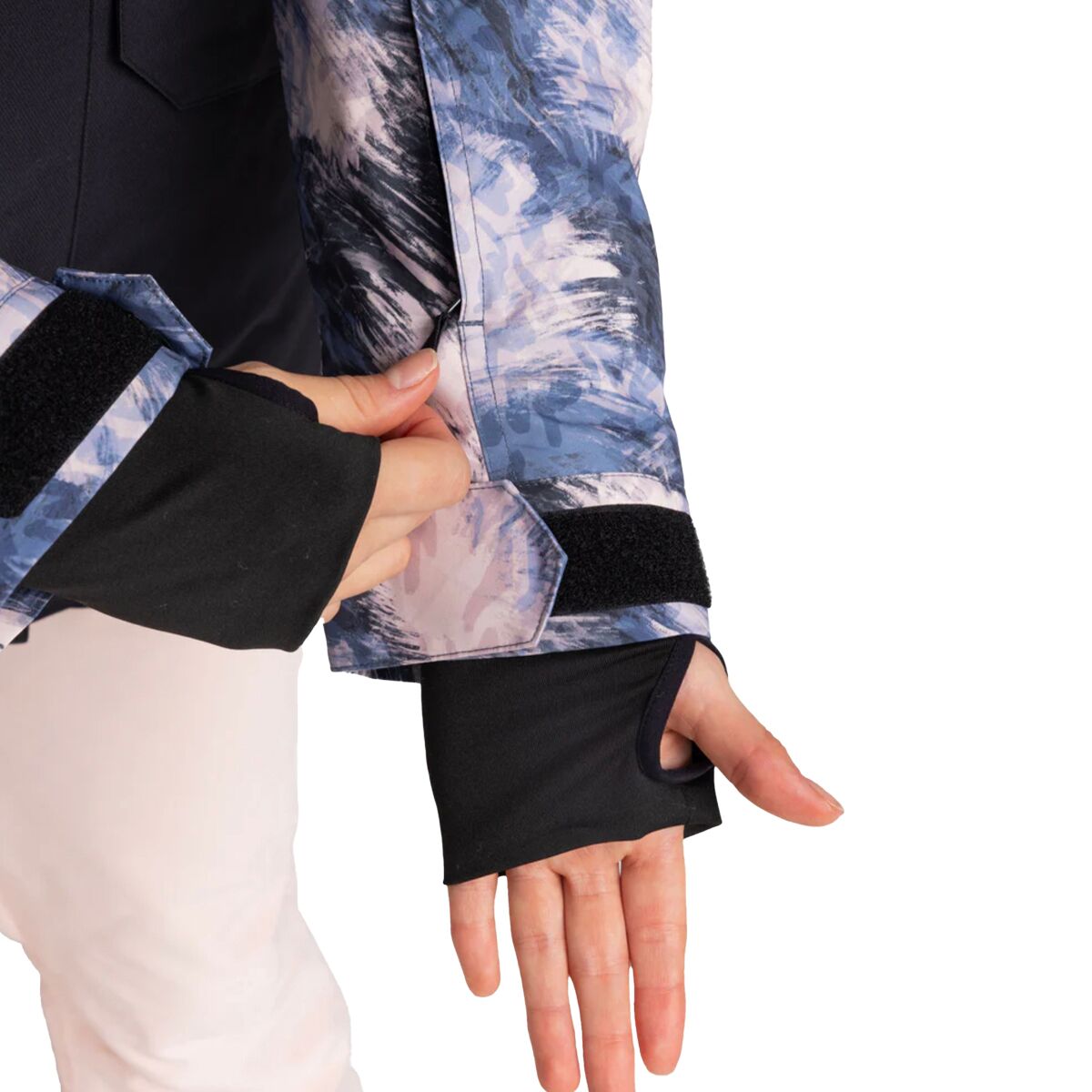 - Wrist gaiters with thumbholes keep our sleeves in place