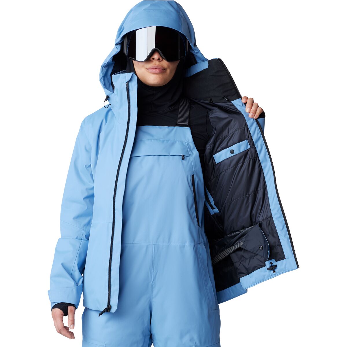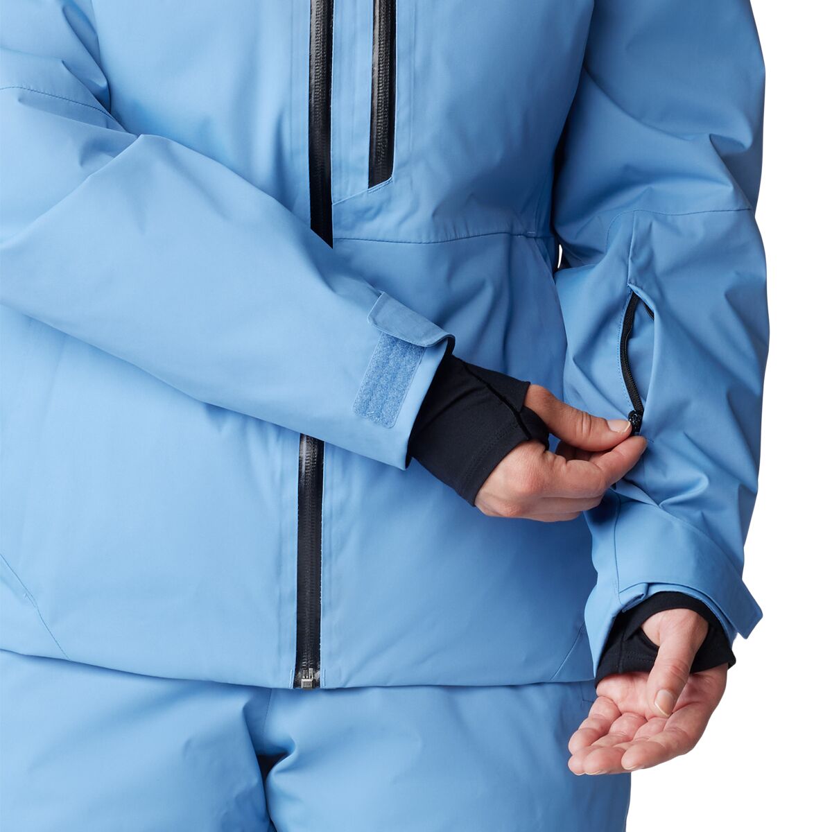 • Powder skirt and hook-and-loop cuffs further seal snow out