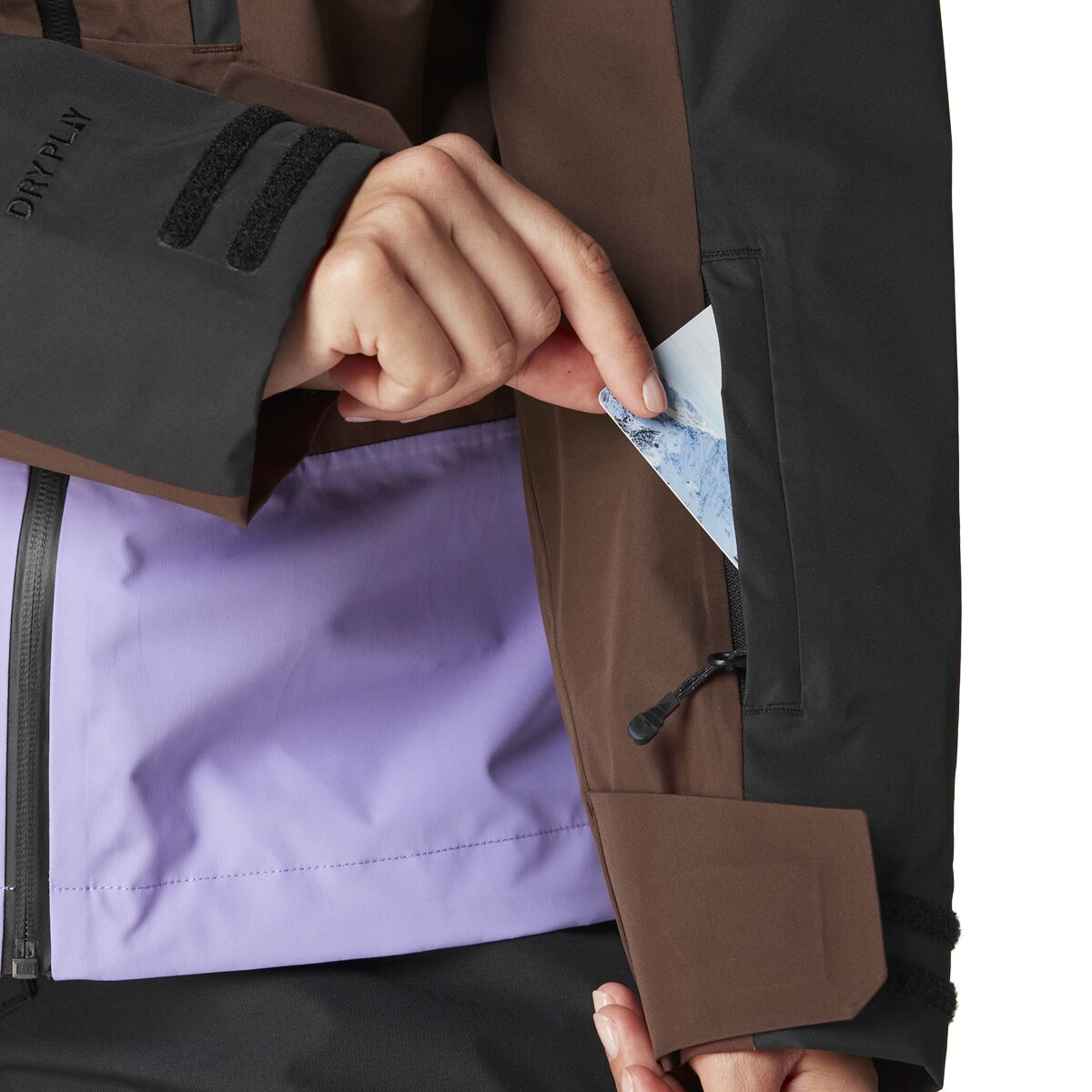 - [membrane/laminate] Dryplay (3-layer), [face fabric] 52% recycled polyester 48% circular polyester, Teflon Ecoelite (PFC-free DWR treatment)