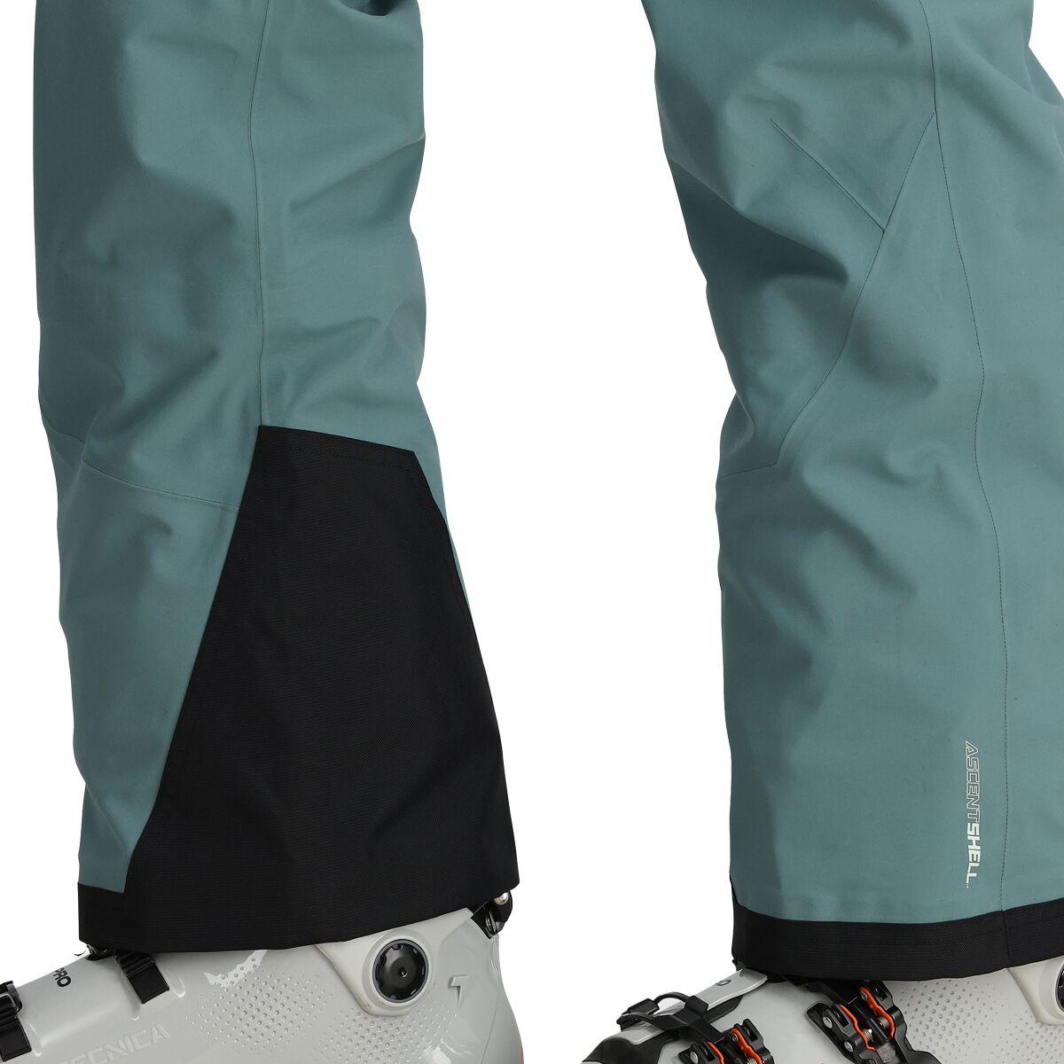 - [membrane/laminate] AscentShell 3L, [face fabric] 40D x 65D 93% nylon, 7% spandex, [leg lining] 50D 100% polyester, [bib] 90D 50% nylon, 43% polyester, 7% spandex, [scuff guard] 420D 100% nylon oxford