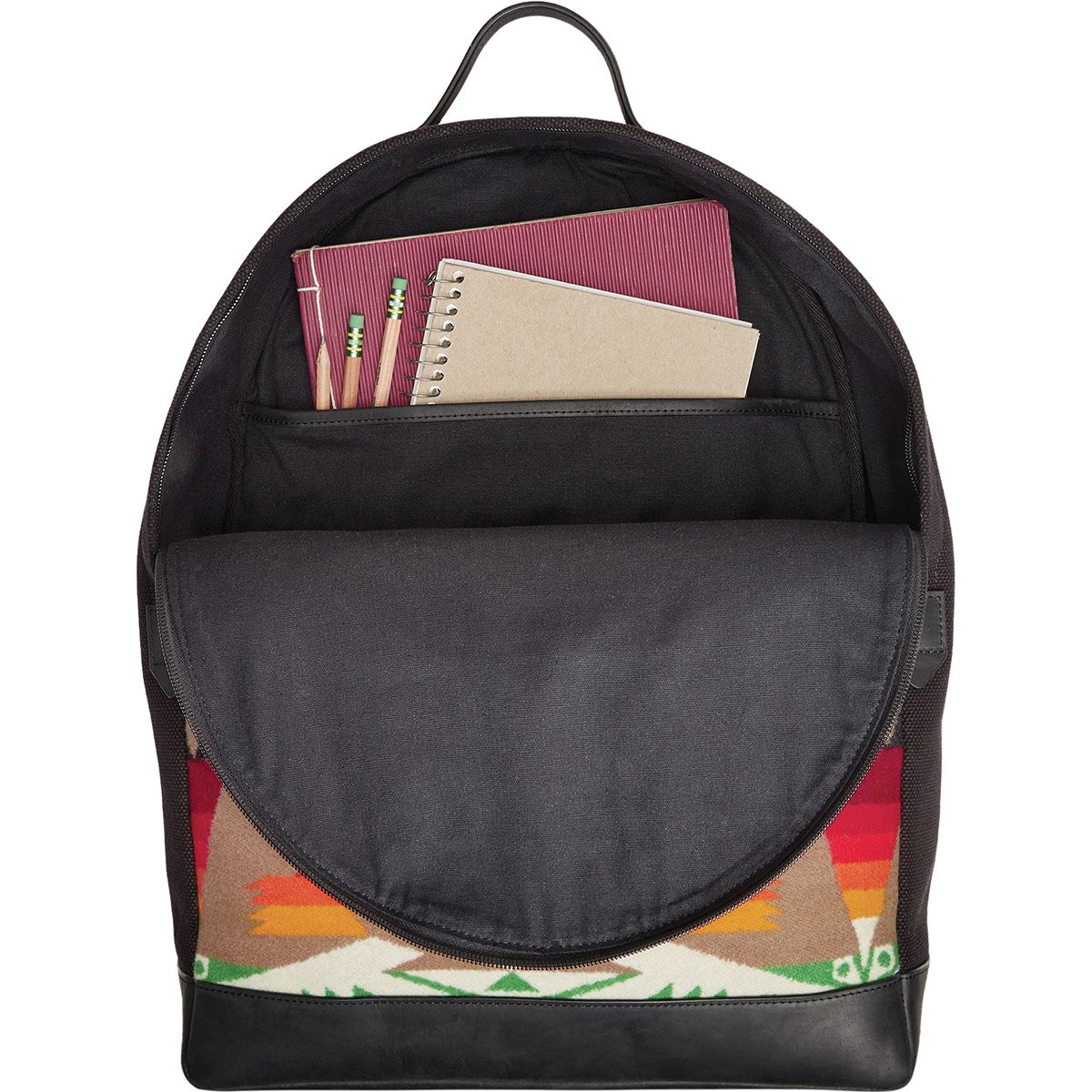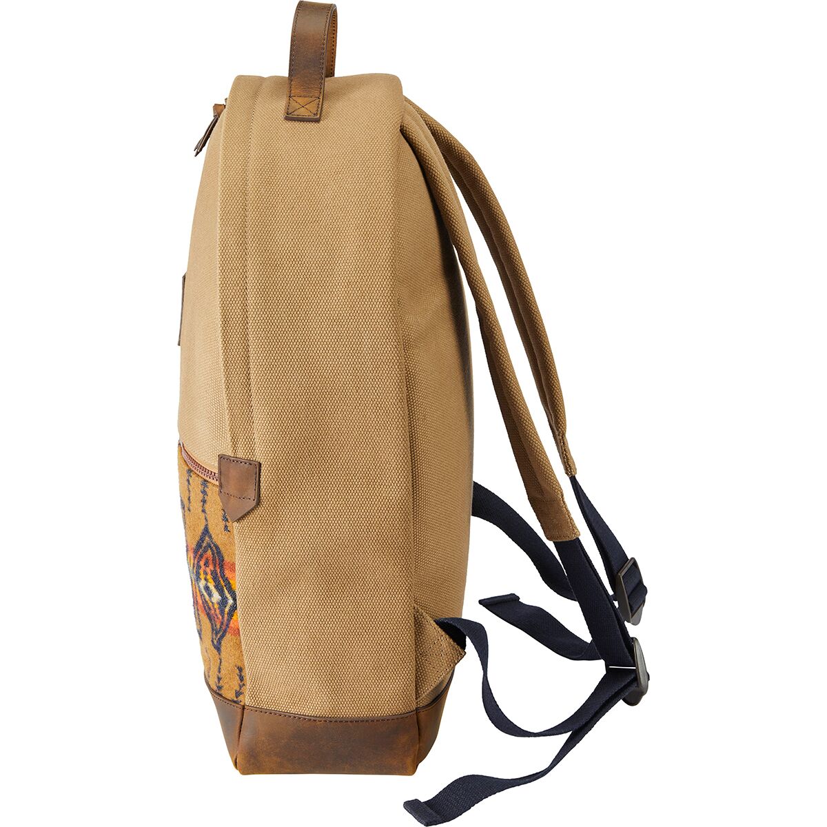 When your heart belongs in the Southwest, the Pendleton Backpack belongs on your back. Perfect for travel, school, or work, this Southwest-inspired backpack is made with a durable cotton canvas with a leather base and top handle, making it as rugged as it is handsome. The padded shoulder straps are adjustable, while the bag itself features a zippered main compartment, zippered front pocket, and one padded laptop compartment.