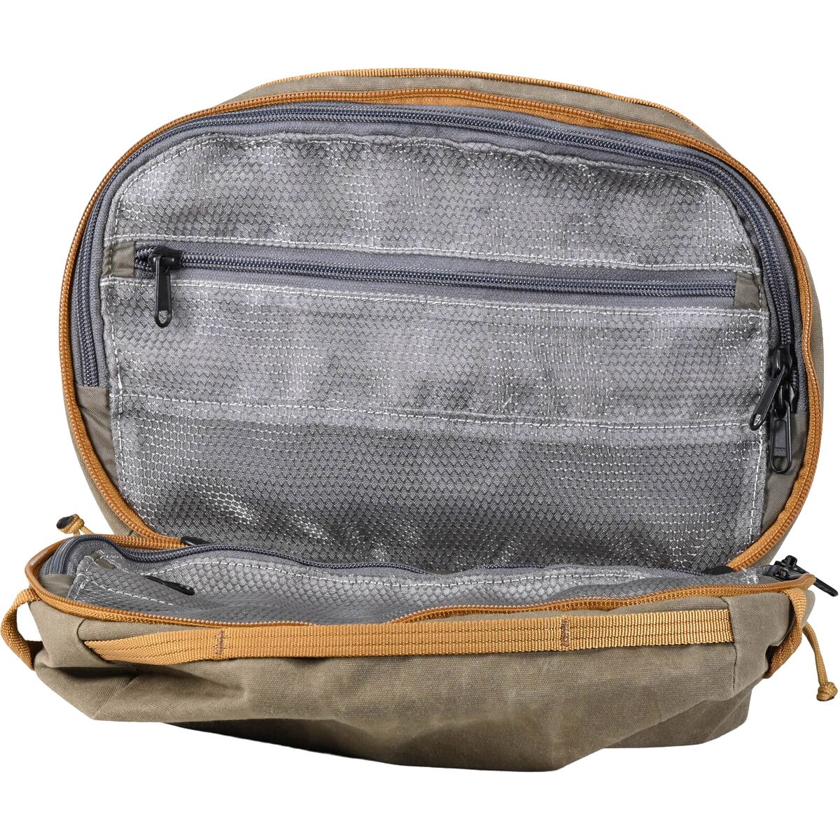 Staying organized on the go is made easy with the Mystery Ranch Spiff Kit. Whether we’re camping, traveling, or wanting to stash an emergency medkit, the Spiff Kit’s bungees and internal dividers keep all of our small essentials easy to access. A clamshell-style zipper makes accessing the contents easy too while the hook means we can hang it up around camp.