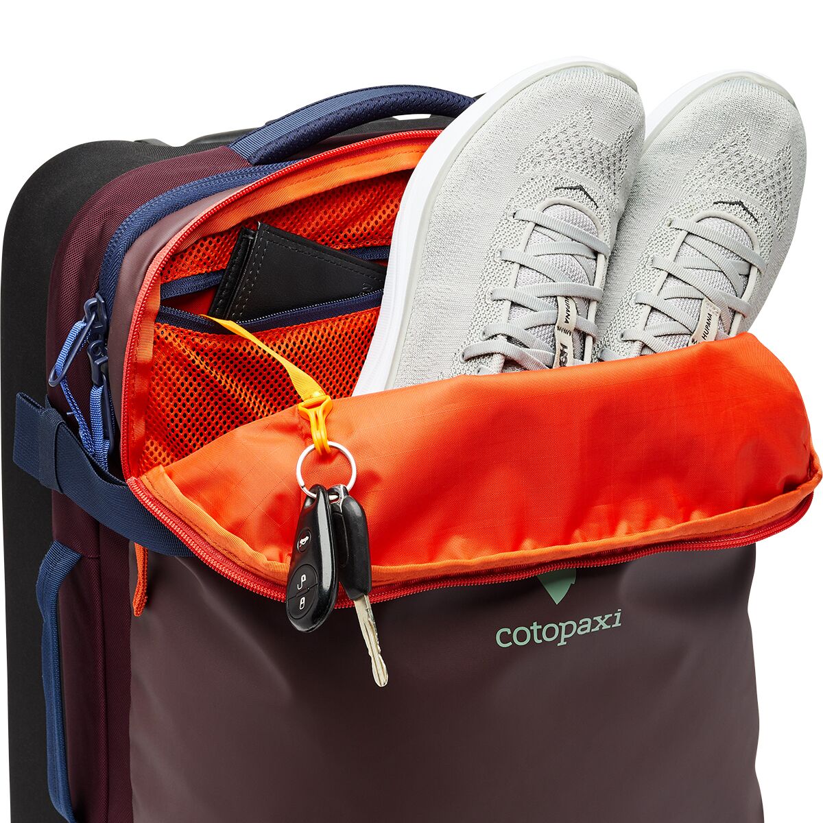 • Cotopaxi´s signature travel bag transformed for rolling convenience