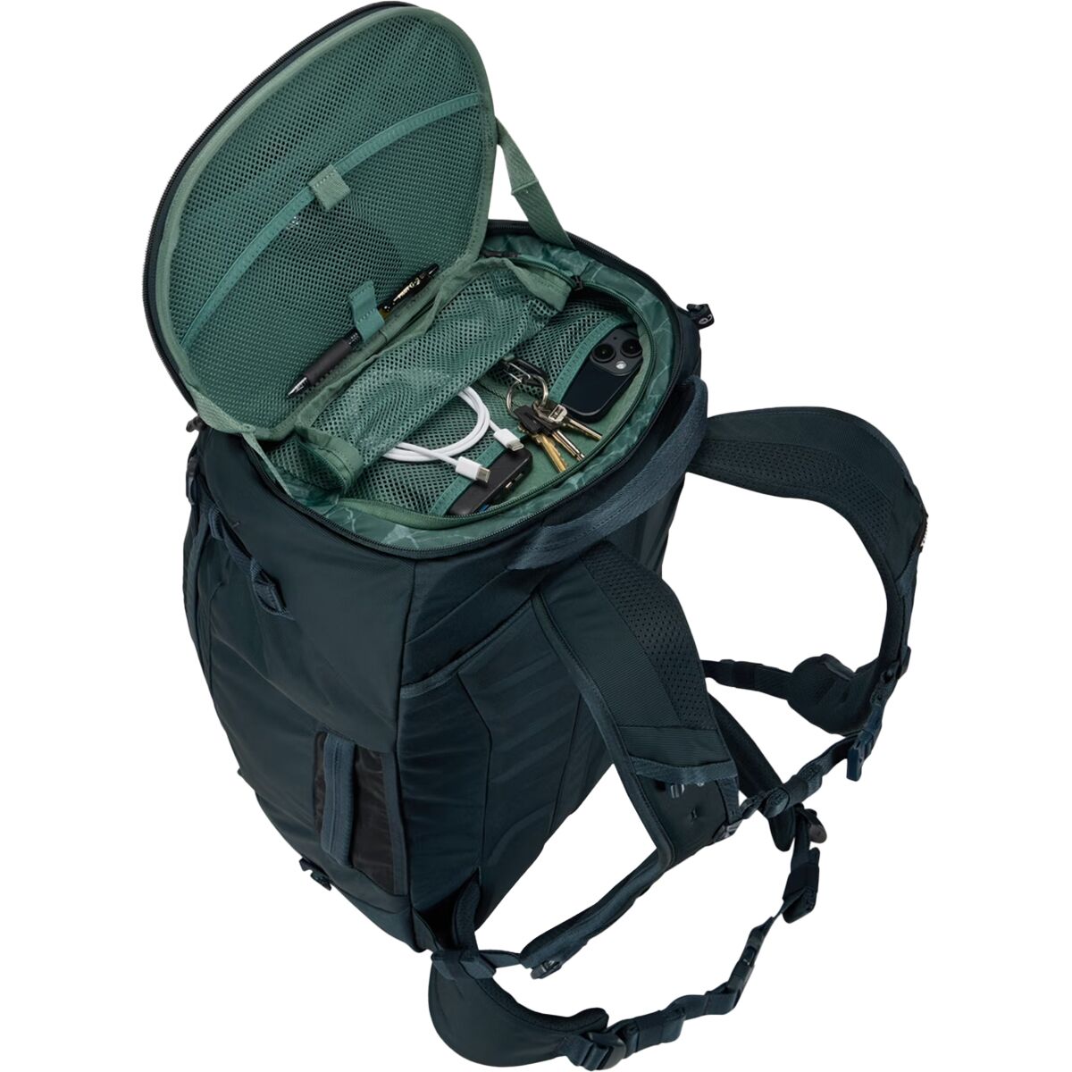 - Internal compression straps and mesh pockets keep gear organized