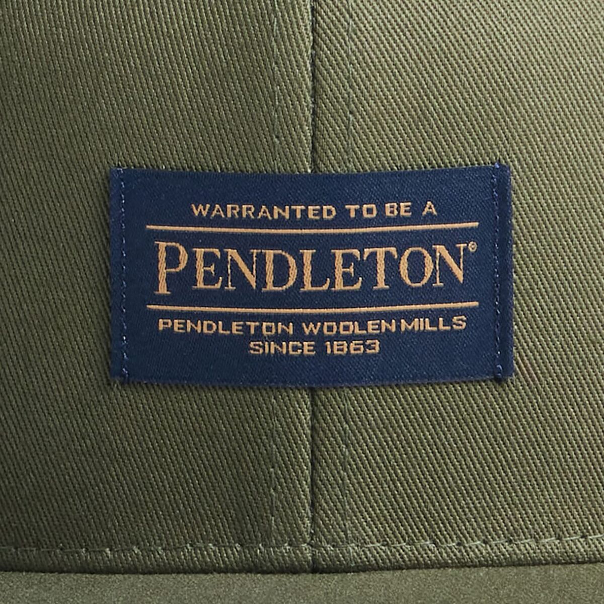 - Flat-brim cap with Pendleton heritage logo patch on front